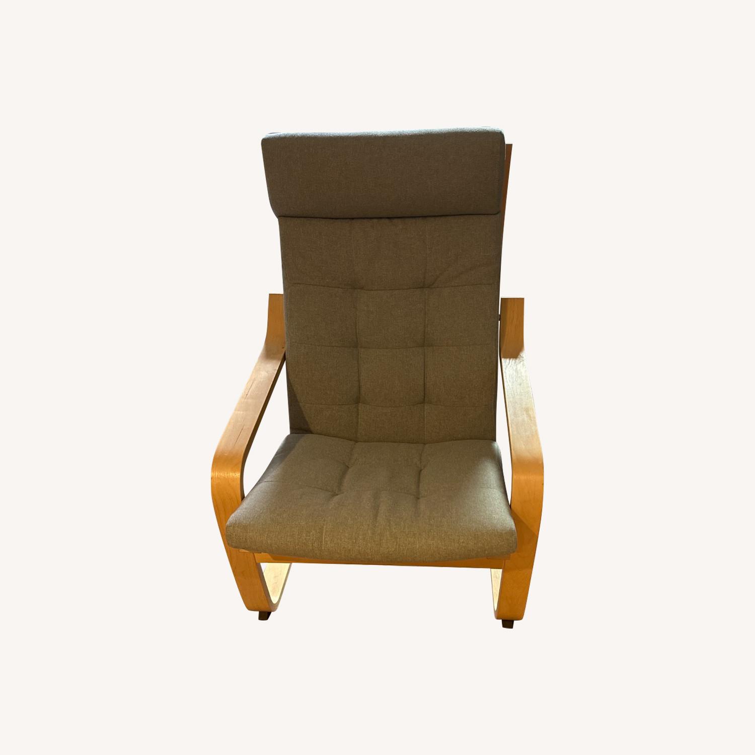 Seller's Notes:Natural birch POANG chair with brand new cushion (still in bag) in green. Selling because my new setup cannot accommodate this extra chair.