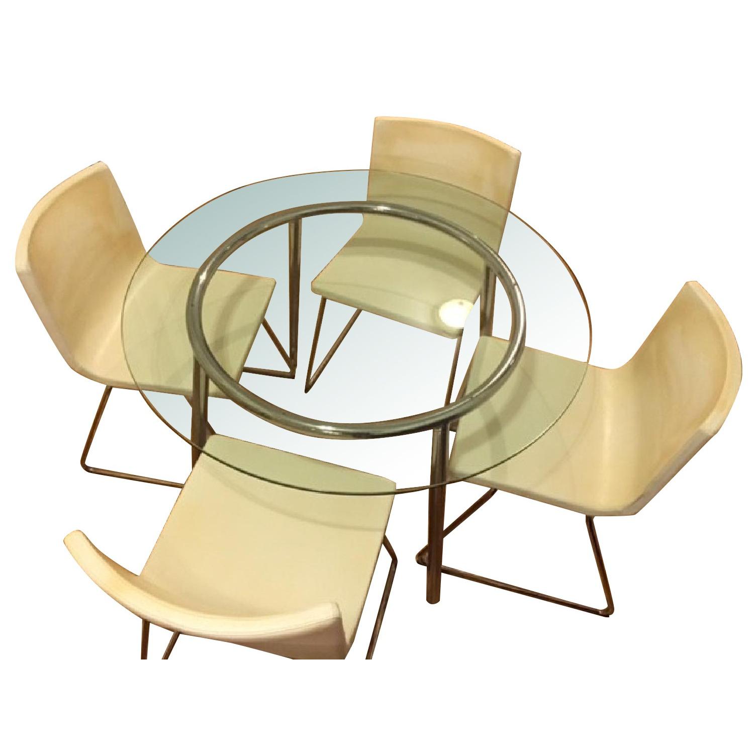 Ikea Round Glass Chrome Plated Table w/ 4 Chairs