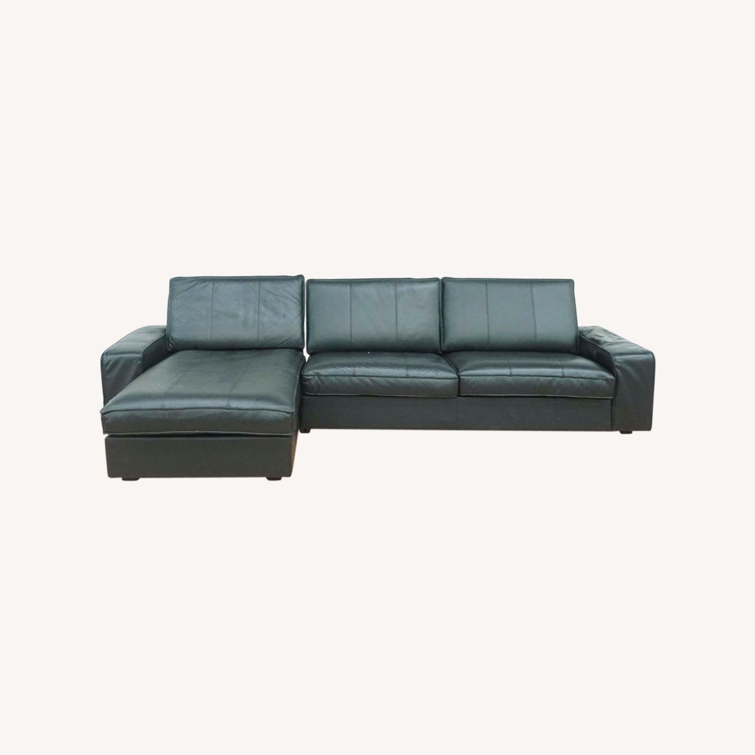 Seller's Notes:Modern Black Kivik Sectional With Chaise Offers A Soft, Deep Seat- Contact Areas Covered In Grain Leather. Brand: Ikea. Dimensions: 125x63x26.