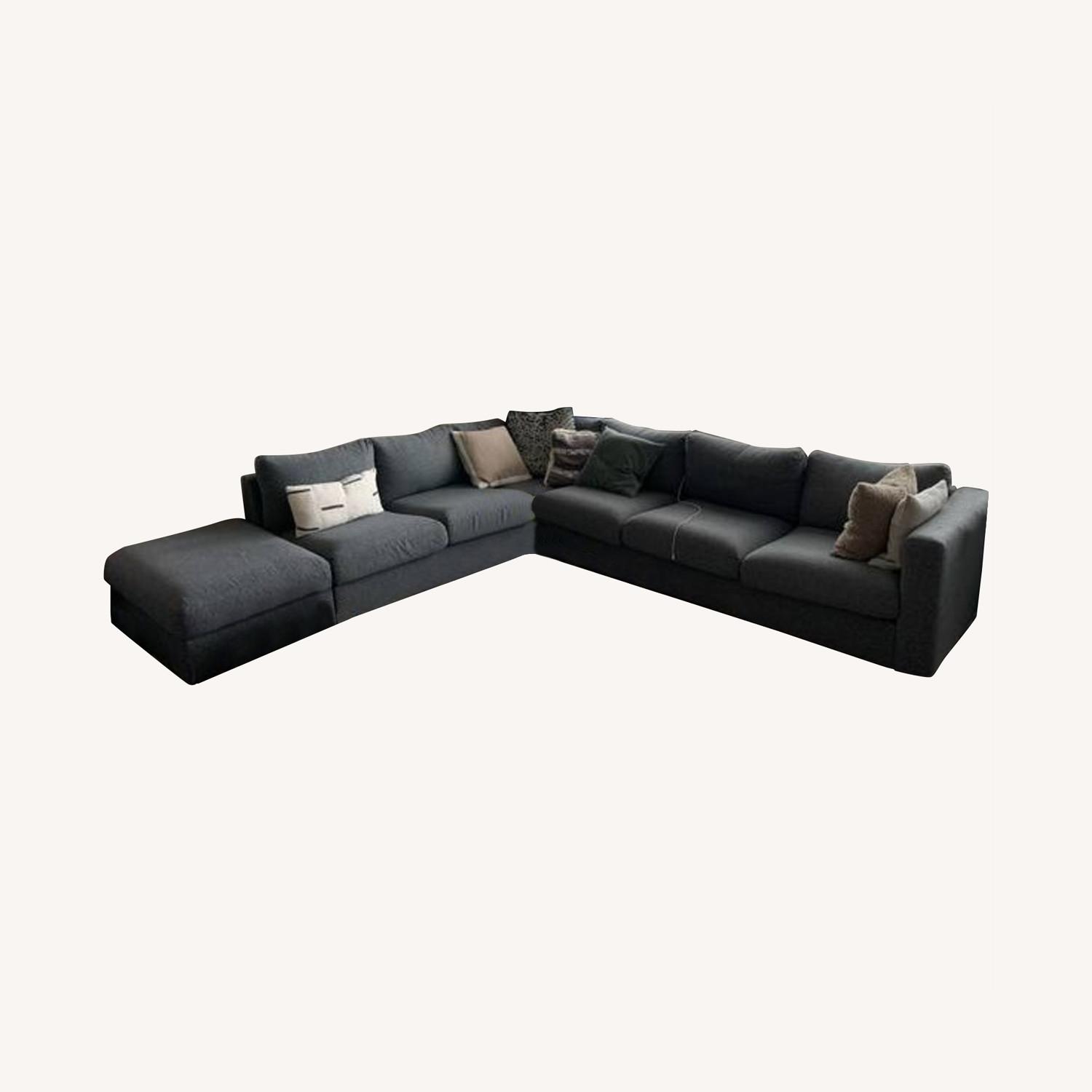Seller's Notes:Selling an Ikea Sectional Sofa (Vimle) Includes an ottoman, 2 seat sectional, corner piece, 3 seat sectional, and a side piece. - Length (Ottoman + 2 seat + corner) = 119" - Length (3 seat + Corner) =125" - Height = 24" - Cushion to floor height = 17" - Seat depth = 36.5" The sofa's sections can be combined in different ways to get a size and shape that suits you and your home. If you ever need a larger sofa, you can always add a section or two. This firm sofa will have a long life since the seat cushions are filled with high resilience foam that gives good support for your body and quickly regains its original shape when you get up. This cover is made of dope-dyed GUNNARED fabric in polyester. It is a durable fabric with a wool-like feel, a warm look and a two-toned melange effect. The cover is easy to keep clean since it is removable and machine washable.