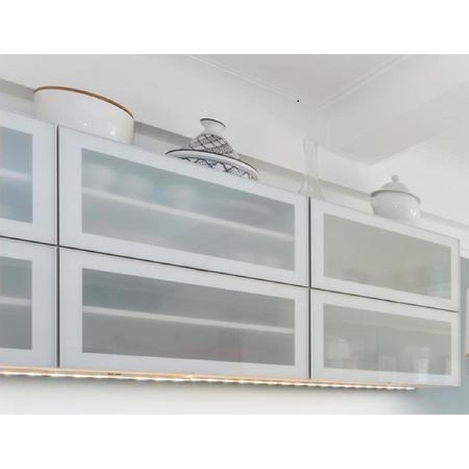 Seller's Notes:For sale: IKEA Sektion wall cabinets, in excellent condition - virtually no blemishes or scratches. Soft closing, frosted glass and aluminum doors. Great storage for dishware, glassware, documents or anything else! We have three available as a set or individually. Metal wall bracket can be included - fits all 3, wouldn't be suitable for 1 cabinet.