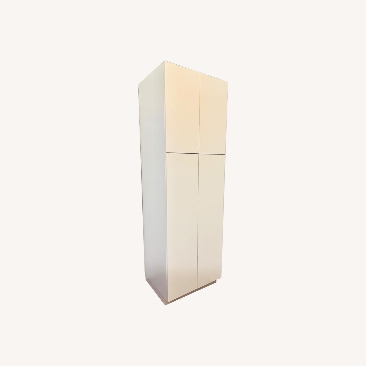 Seller's Notes:IKEA SEKTION High Cabinet With Shelves/ 2 Doors Veddinge 15x24x90 PAIR Two 15" wide by 24" deep by 90" tall white IKEA Veddige Cabinets. 2x 30" doors, 2x 60" doors. 8 adjustable shelves. Includes all hardware, toekick, and hinges; feet and wall mount. Like new. Perfect condition. Less than 3 months old. They are $610+tax from IKEA. Selling because they no longer work for our layout. Great cabinets. For pick up: 4th floor walk up. Can partially disassemble in advance of pickup.