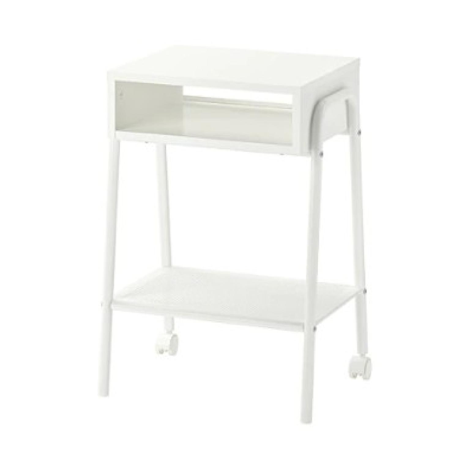 Seller's Notes:A set of 2 Ikea Setskog nightstands for sale, both in great condition with hardly any wear (only 1 year old). An open drawer sits on top with a table at the base. The back 2 legs sit on wheels which makes it very easy to move and reposition. Cute and modern!