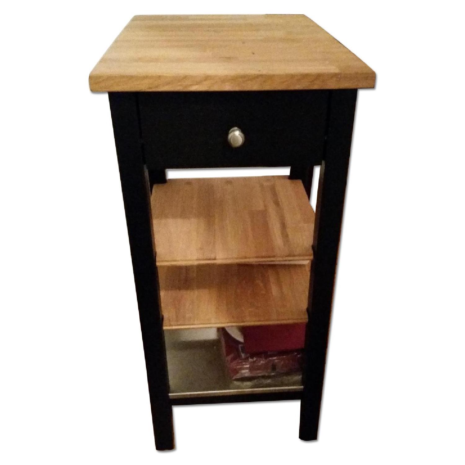 Seller's Notes:This beautifully assembled solid oak cart will add a portable kitchen to your home. A drawer, drop down shelf, and wheels makes it perfect for storing items and itself in a small nook or cranny of your apartment. Already assembled and ready for you to take home and love. Product dimensions Width: 16 7/8 " Min. depth: 17 1/2 " Height: 35 3/8 " / 35 3/8 " http://www.ikea.com/us/en/catalog/products/20219837/