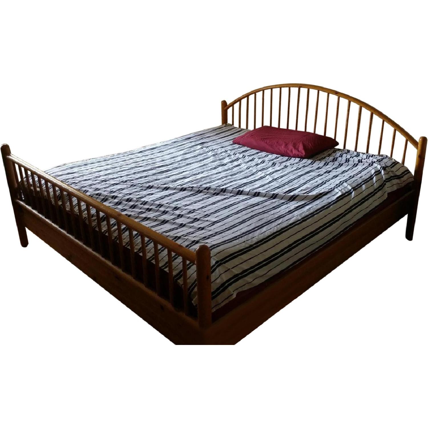Seller's Notes:King sized solid pine wood bed frame only. Slatted bed base with steel support. Purchased brand new from IKEA more than 20 years ago. Head and foot board are solid pine wood. One non-smoking owner, not exposed to dogs or cats, no damage. Perfect condition and manufacturer original natural gloss finish intact. Headboard height: 31" Headboard width: 79" Footboard height: 28" Footboard width: 79"