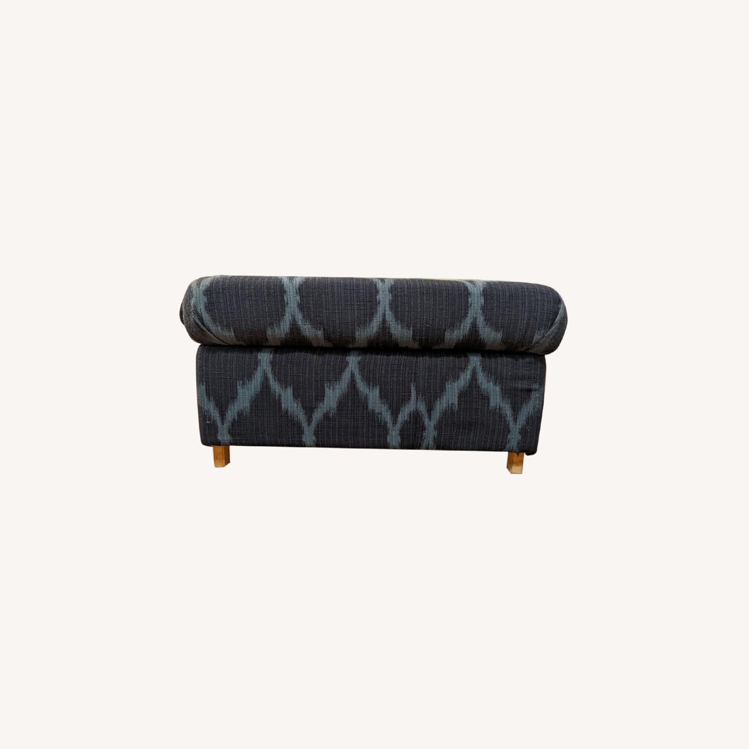 Seller's Notes:This ottoman has held dishes and linens equally well - base is able to bear at least 10 pounds of antique china, probably more. Interior is 28 x 20 x 8 inches. There is a stain on the top of the ottoman, but could be (and previously was) reupholstered.