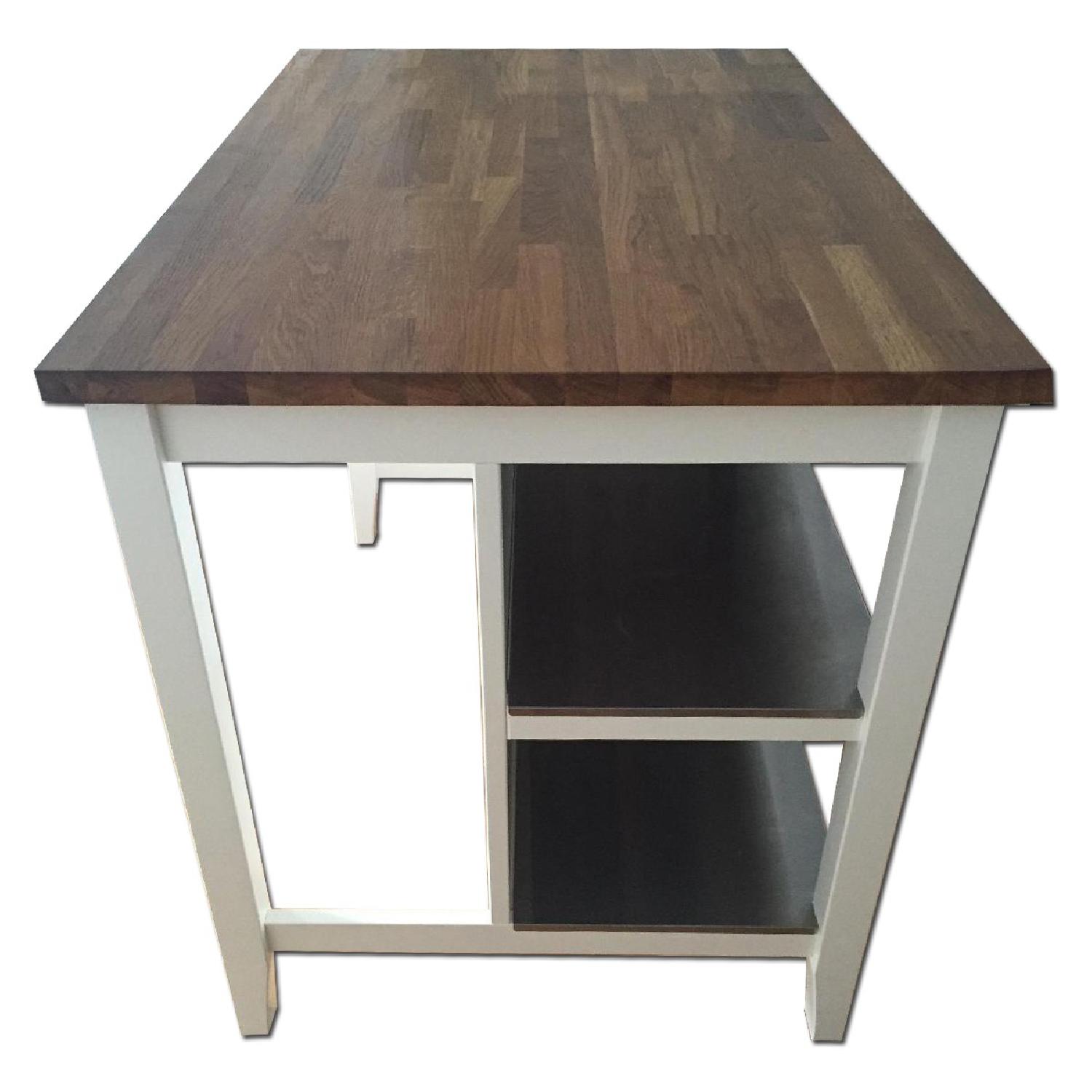 Seller's Notes:This has been the perfect kitchen island for my studio apartment. It is still in great condition minus minor stains on the butcher block surface that most people won't notice (please see photos). All surfaces wipe down easily with a wet cloth or mineral oil. The only reason I am selling it is because it doesn't fit in my new apartment.