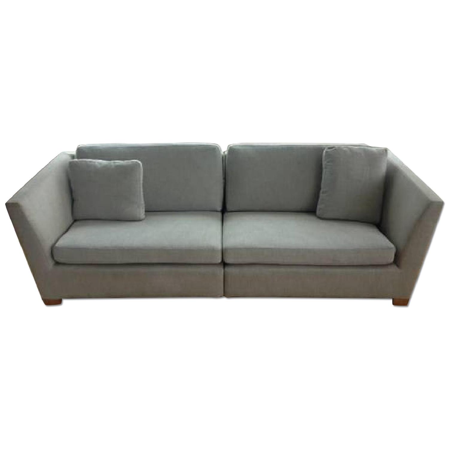 Seller's Notes:IKEA Stockholm Couch Firm goose down Two pillows Strong sturdy with light wooden feet Light grey denim removable covers (washable) Couch can split in two (easy to move) 93"( 7ft 9")L 36"D 28"H