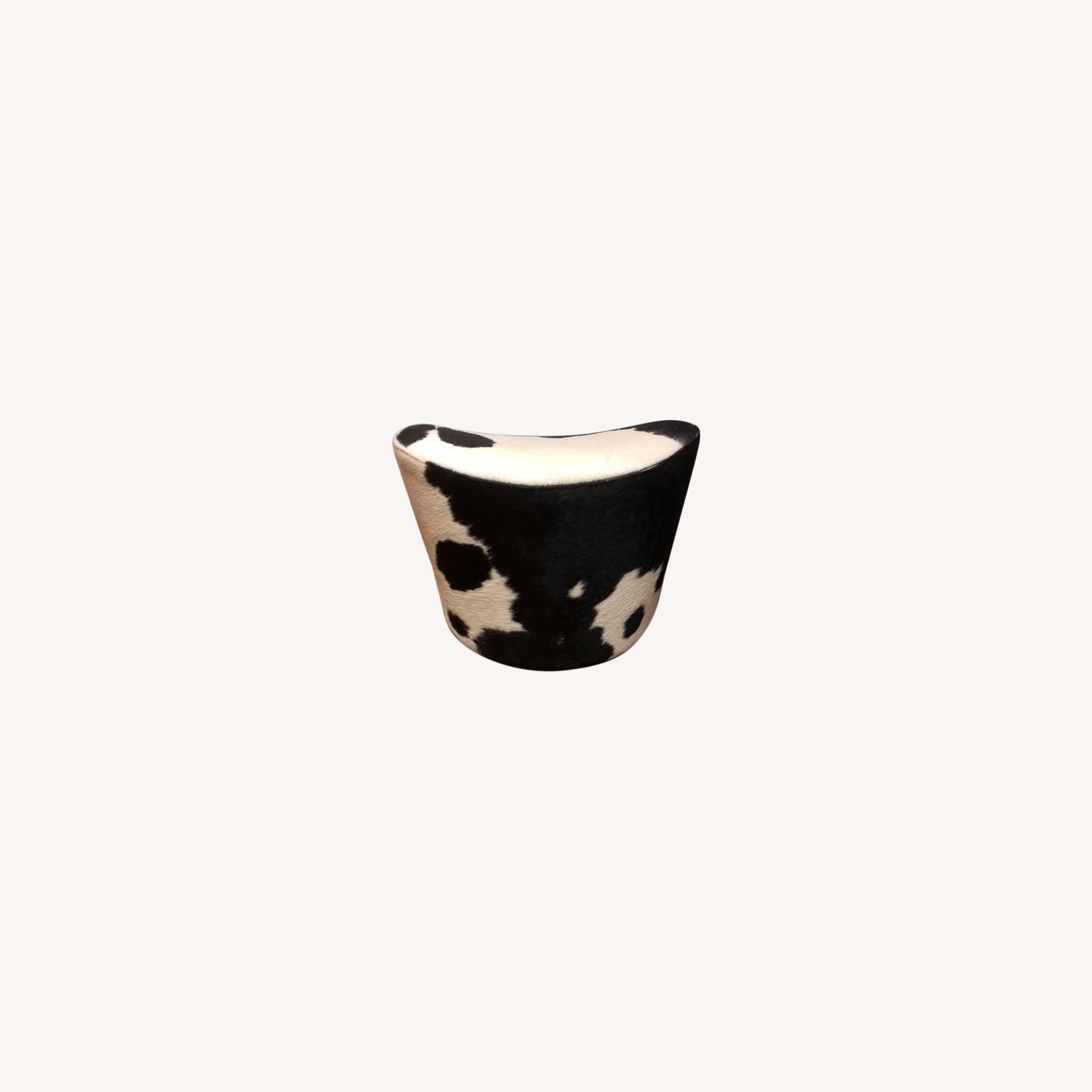 Seller's Notes:A genuine cow leather footstool, rotary and confortable.