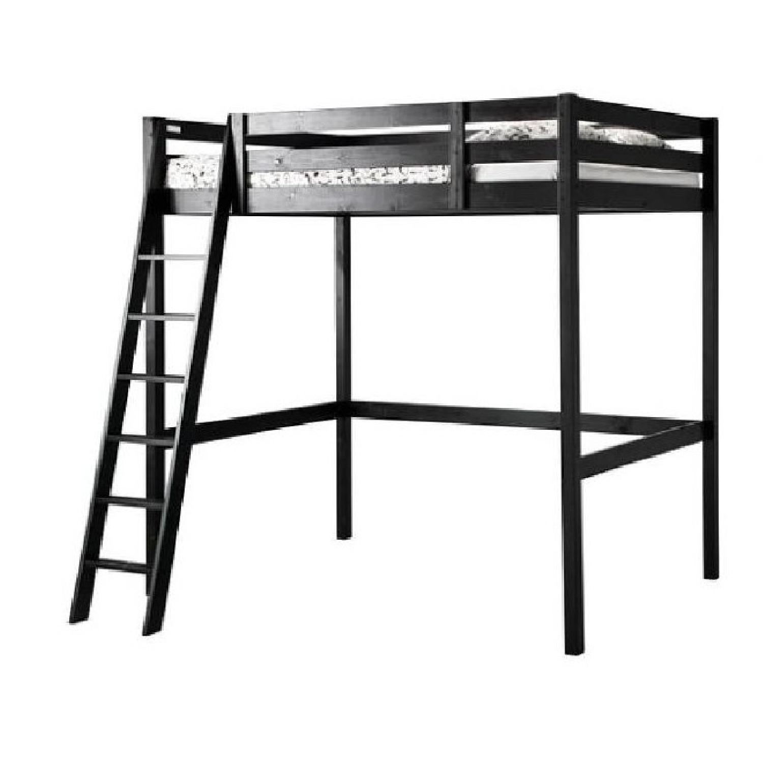 Seller's Notes:Ikea (Stora) Loft Bed Frame Black Wood (Full / Double) Over a year with slight scratches. Perfectly functional. Perfect for NYC apartment with limited space.