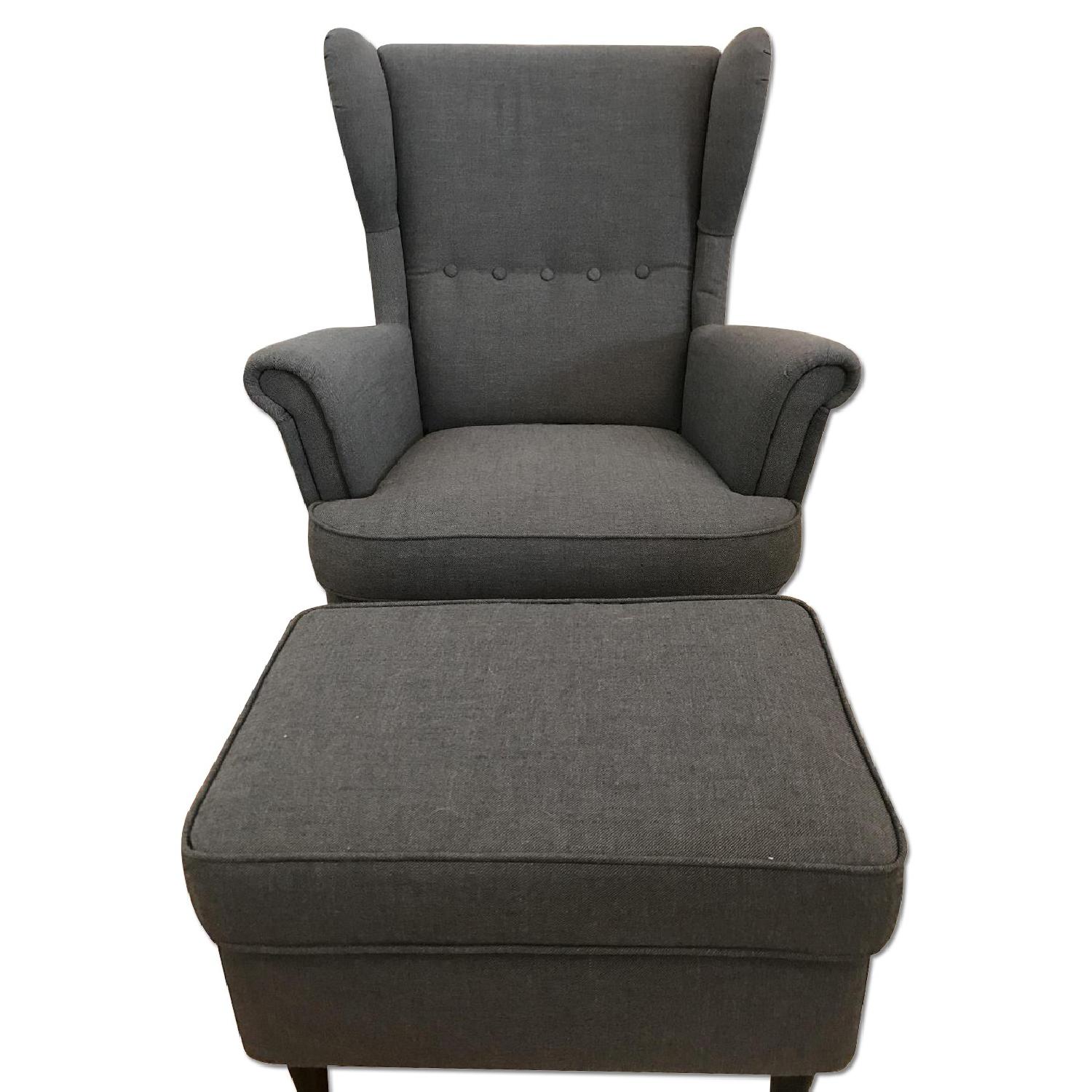 Seller's Notes:We are moving out of our apartment and selling everything! This wing chair and ottoman is about 15 months old and in good condition. The ottoman measures at 23.6"W x 15.7"D x 17.3"H