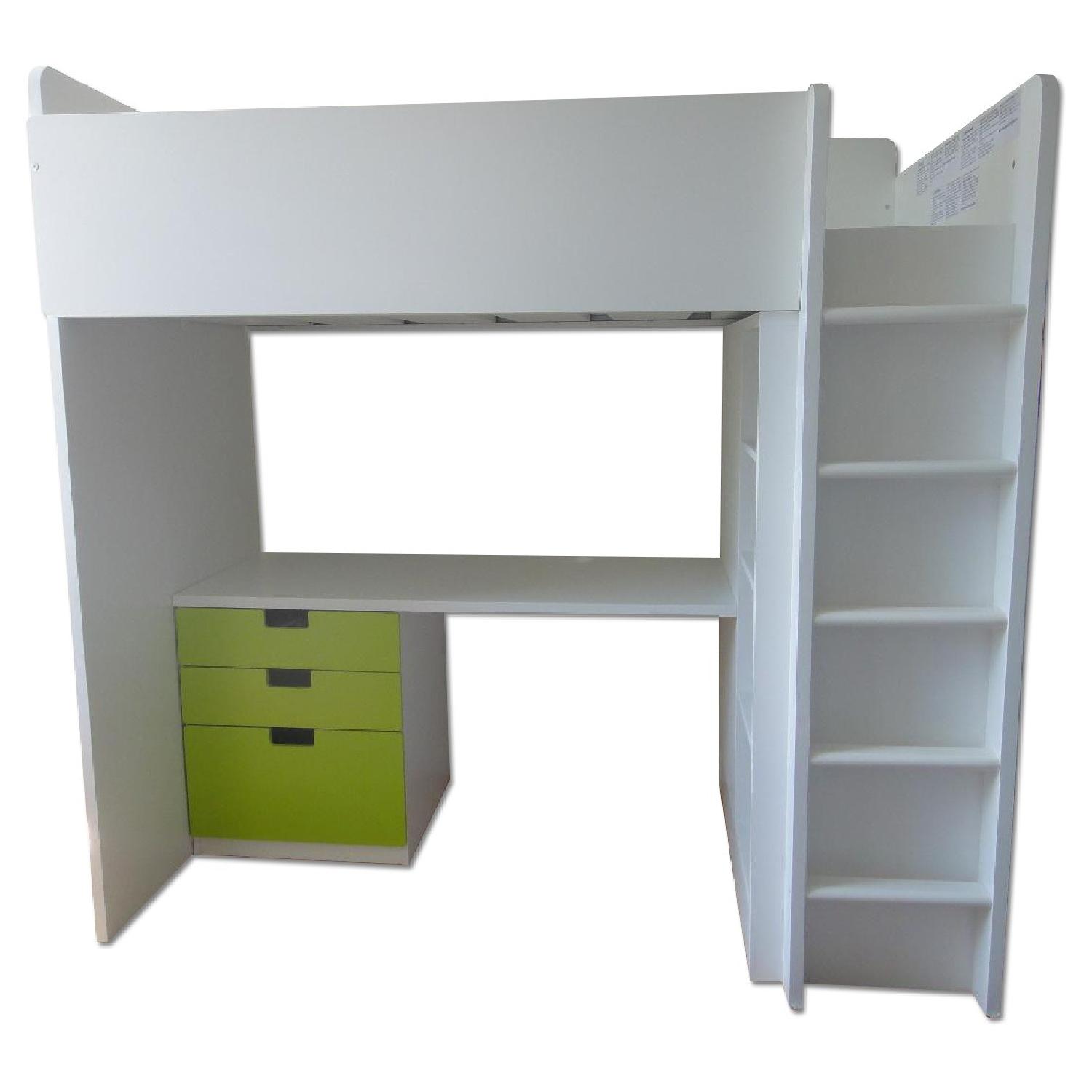 Seller's Notes:Almost new Stuva loft bed system as bought from IKEA. It is in superb condition. It has no scratches on it, nor any wear and tear. There is a slight stain on the bottom close to the floor but it is hardly noticable. It is perfectly stable and very practical. It has excellent storage capacity at an appropriate height for a child. The good size desk is excellent for homework and other projects. It can be broken down into 3 or 4 pieces for easy moving.