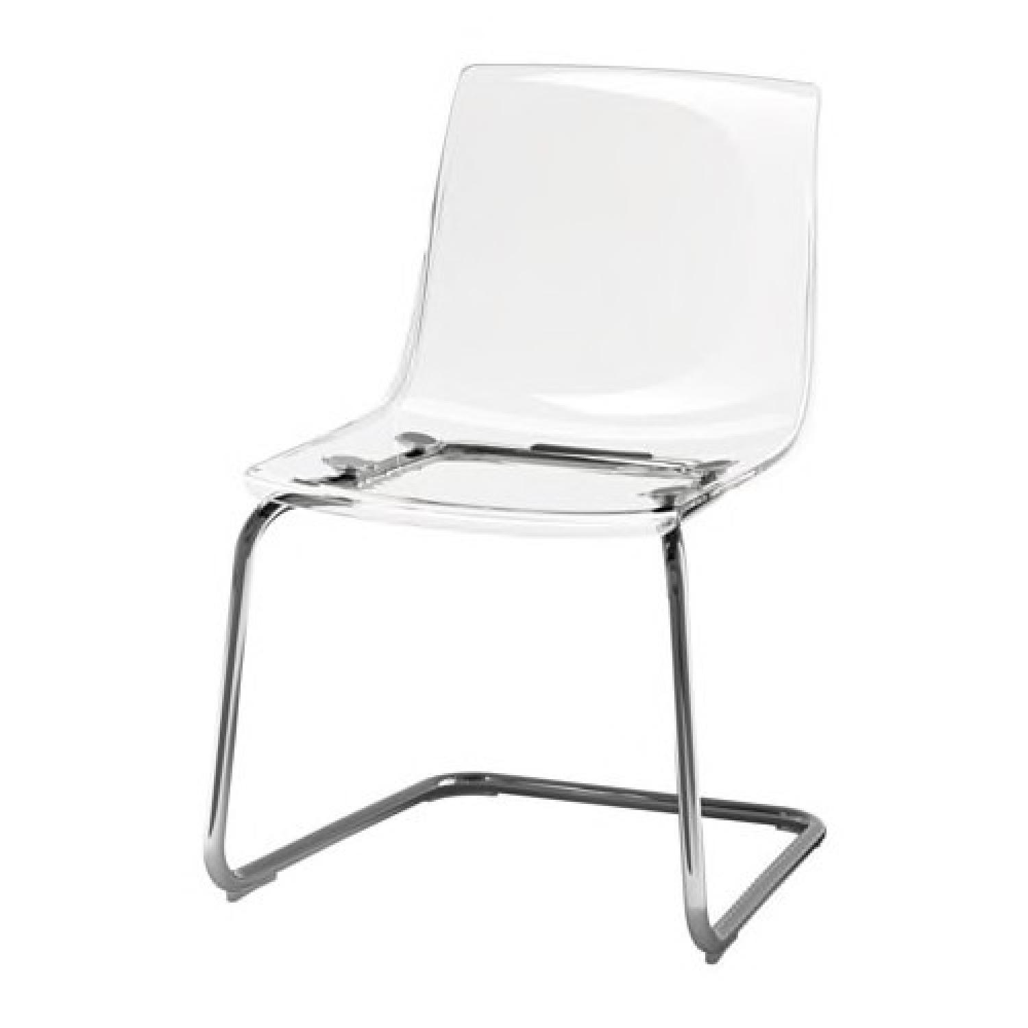Seller's Notes:I’m redecorating my dining area and hoping to sell this set of Ikea Tobias chairs. Chairs have minor scratches from wear and tear, and are hardly noticeable. One of the two has a small stain (2 in. x 1/8 in.) on the lower back area.