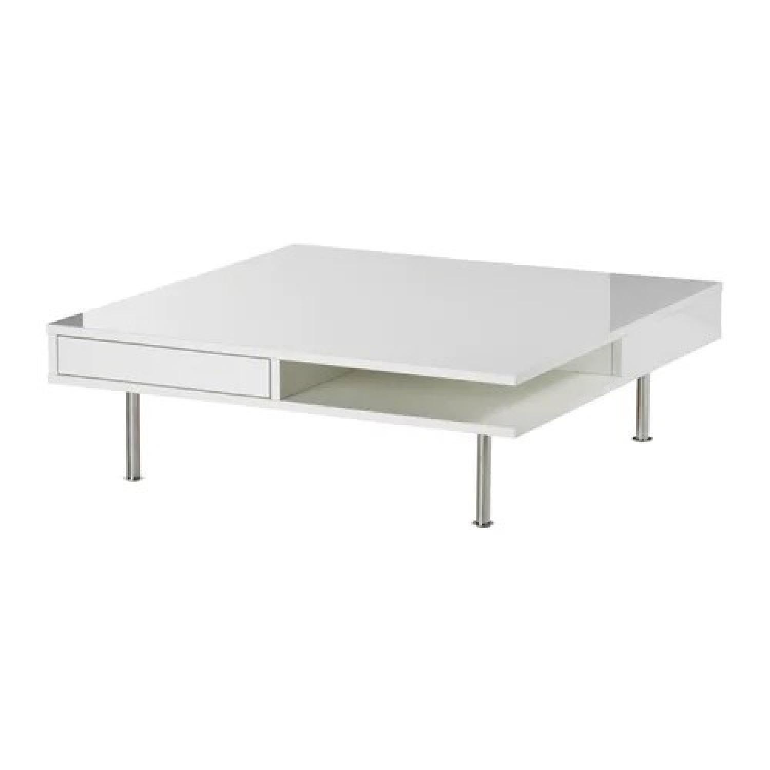 Seller's Notes:We love this table for its modern look and storage (2 drawers, 2 shelves), but we are switching to something more child-friendly. It is not new, but it has no noticeable blemishes or scratches. The only small scratches are impossible to capture in photos because they are barely noticeable, especially given the glossy white finish of the table.