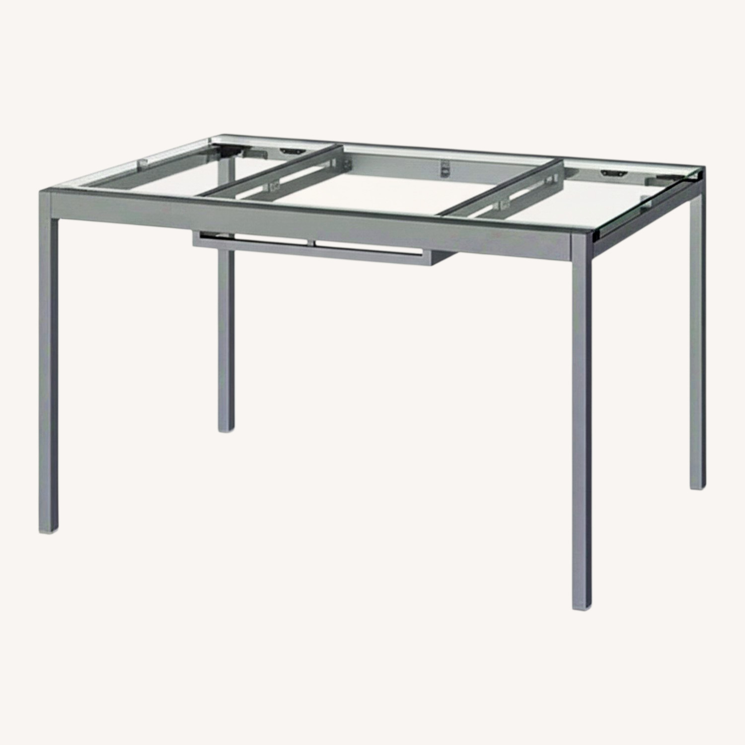 Seller's Notes:This is an expandable glass dining table. It has been used as an office desk.