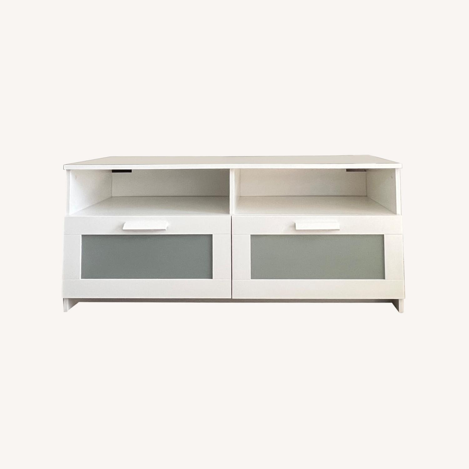 Seller's Notes:Ikea BRIMNES TV unit in white, dimensions 47 1/4 x 16 1/8 x 20 7/8 inches. This sleek and modern TV unit is in excellent condition and offers ample storage space with large drawers that make it easy to keep remote controls, game controllers, and other TV accessories organized. Key Features: - Large drawers for organized storage - Cable outlets for easy cable management - Keeps cables and cords hidden but accessible This TV unit is perfect for any living room or entertainment space, providing both functionality and style.