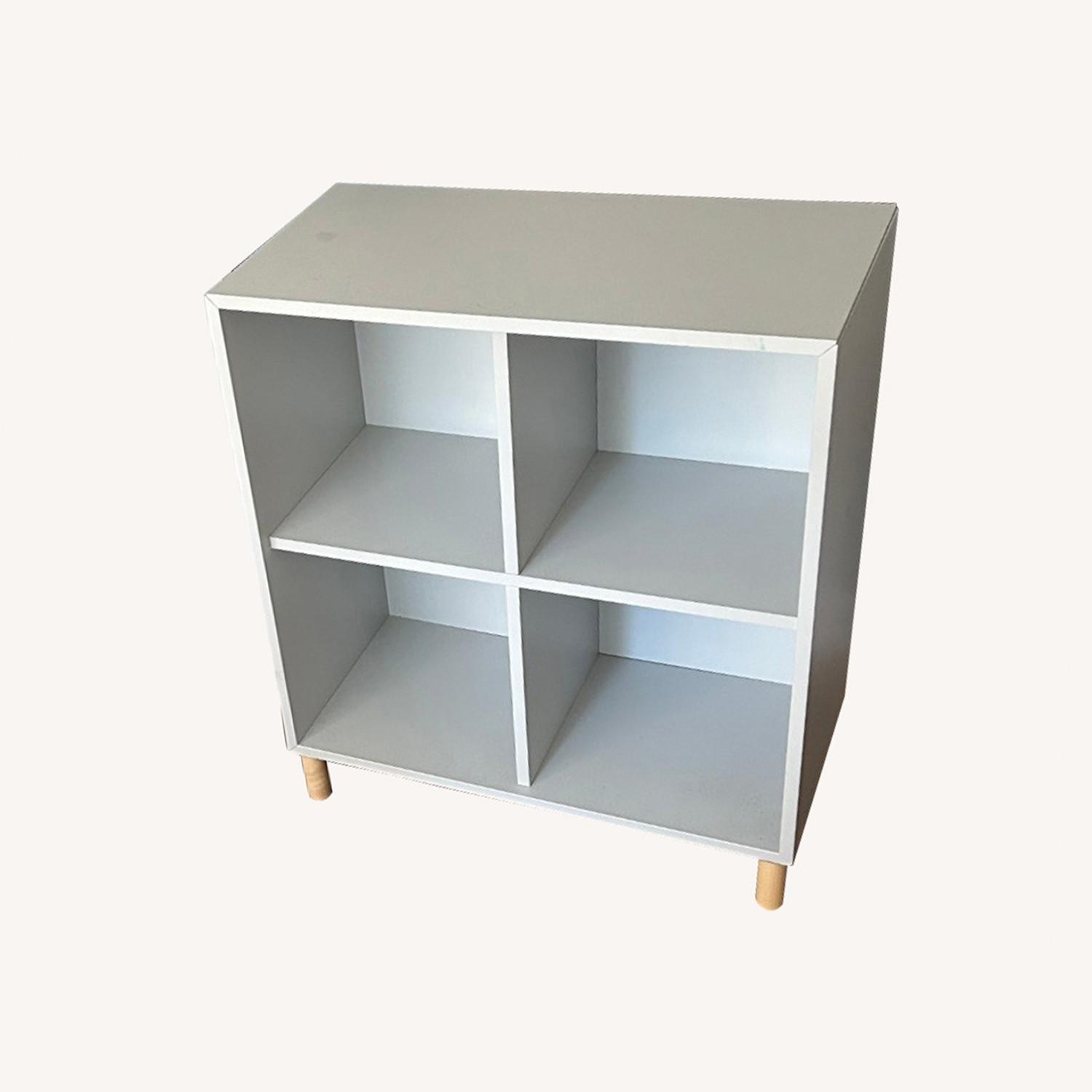 Seller's Notes:I am selling two light-grey Eket bookshelves from Ikea in like-new condition. They were used to store our vinyl records in our last apartment, and they do not serve a purpose in our current one.