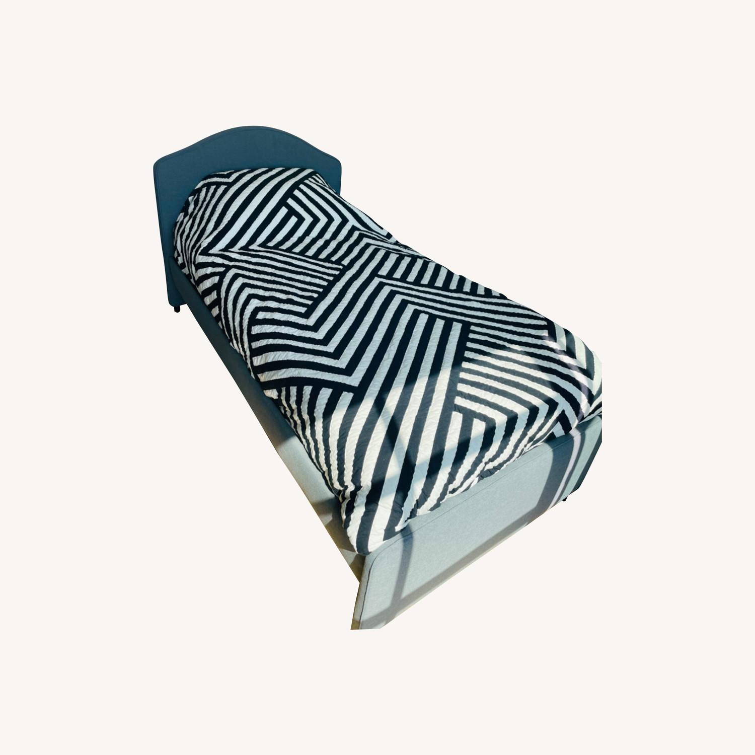 Seller's Notes:Gorgeous twin bed, perfect condition less than a year old Lovely comfortable upholstered headboard Lightweight to move and clean underneath We’re only selling as we’re moving abroad!