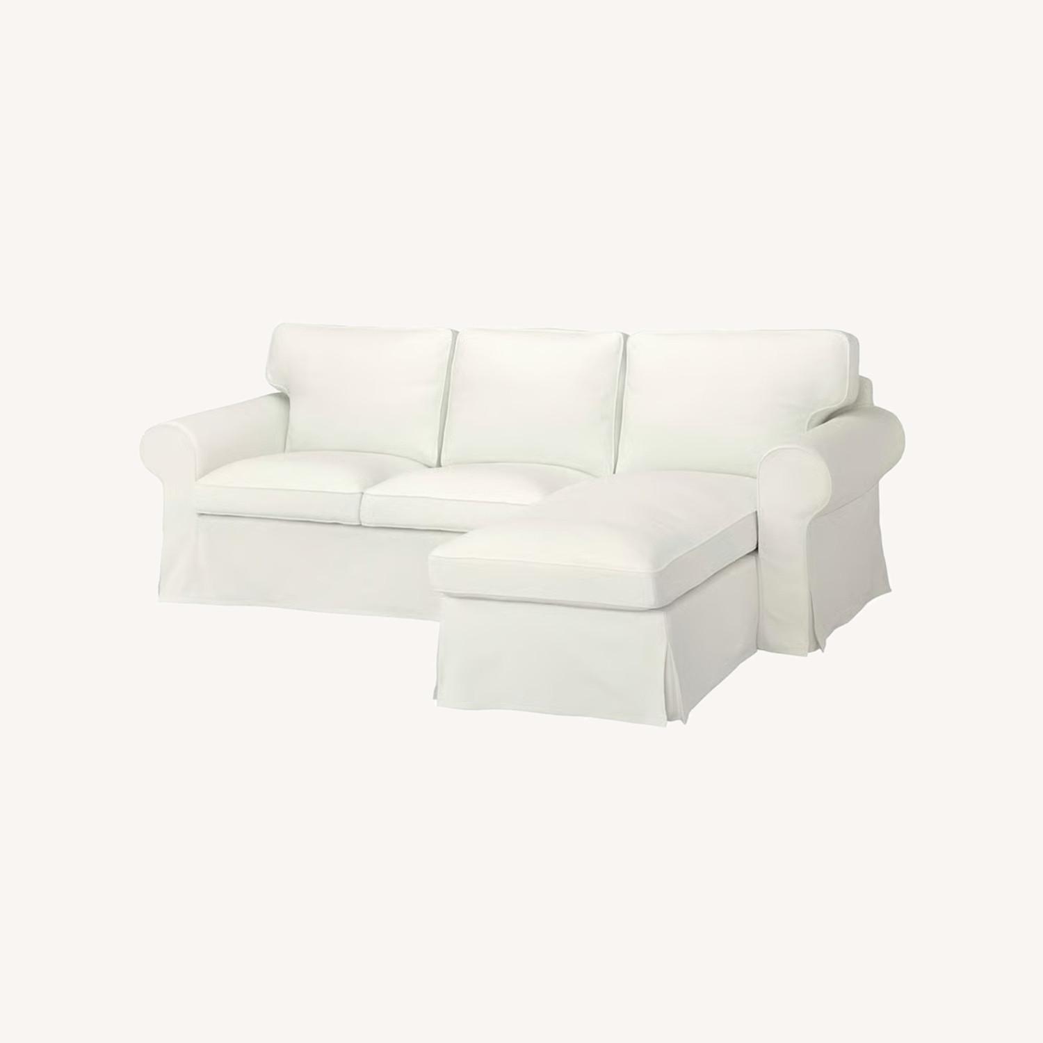 Seller's Notes:I am selling my Ikea Uppland sofa with chaise in white. It is 3 years old and in almost perfect condition- sat on throw blankets 90% of the time. Slipcover is removable/machine washable- it has been washed before. A new slipcover is also available on Ikea website. Note, there are two water stains on the back cushions.