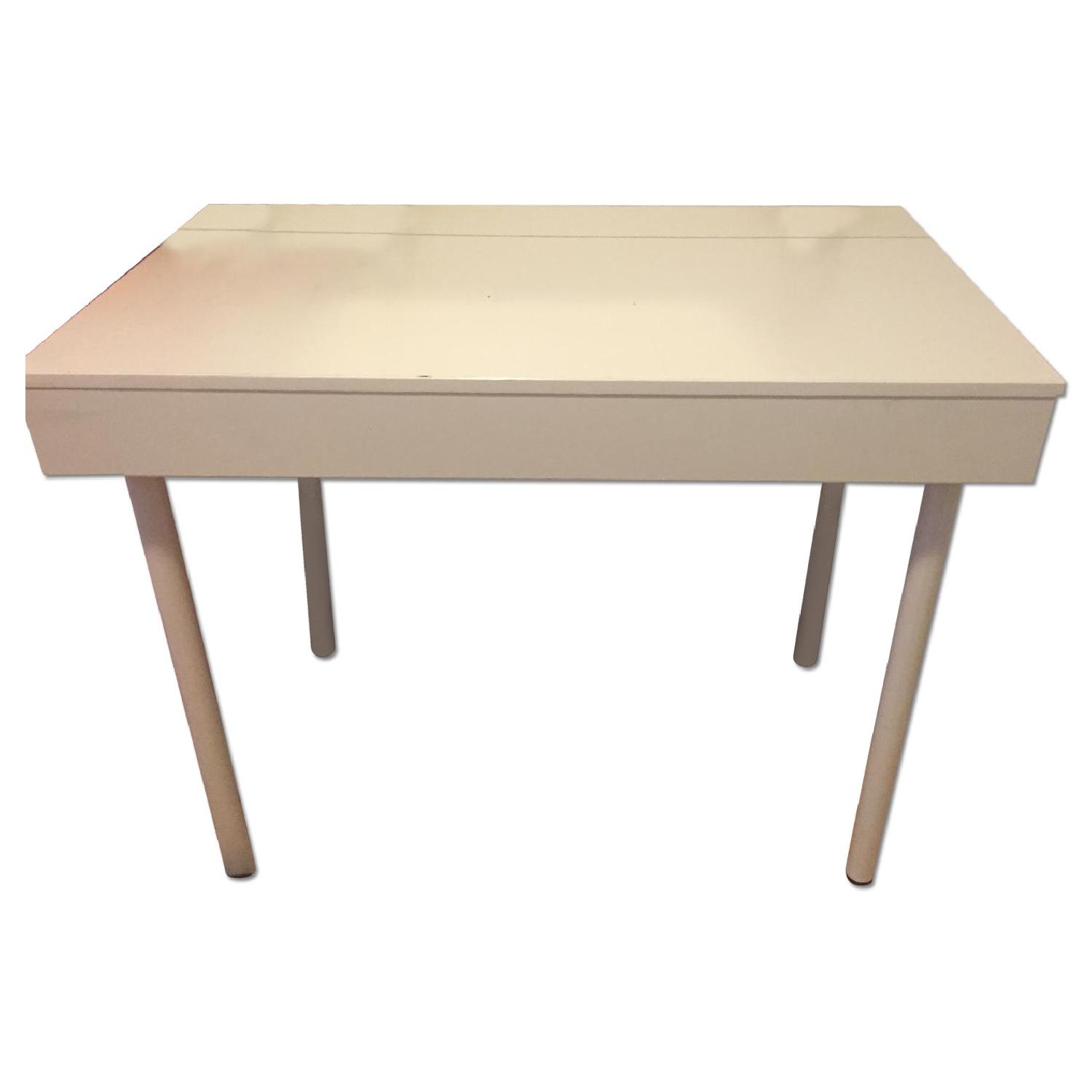 Seller's Notes:All white, Vika Veine IKEA desk that opens up for extra storage inside. Inside there is a hole that allows computer wires to be run through in order to store laptop inside the desk as well. Kept in excellent condition, only minimal (2) scratches on the desktop, picture displays scratches. All four legs can detach, attached by four screws each. Different legs can be purchased through IKEA if looking for a different style to the table top. Moved from Brooklyn to Manhattan and no longer need the desk in the new space. No longer sold on IKEA but here are websites that talk about the desk: http://www.homedit.com/the-minimalist-vika-veine-table-top-ikea/ http://fancy.com/things/110739555774110723/Vika-Veine-Table-Top http://www.twanis.com/2012/05/most-practical-ikea-computer-desk-vika.html