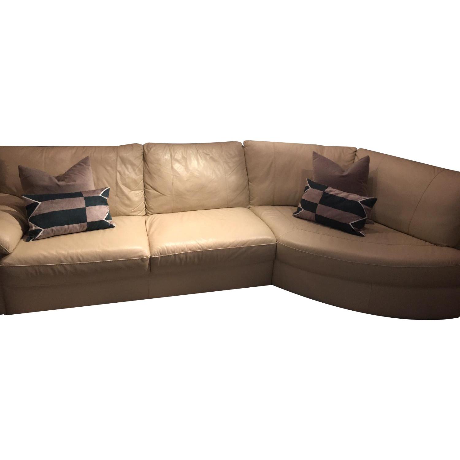 Seller's Notes:The couch has been well-cared for past 4 years with leather cleaning supplies. No pets or smoke at home. There is small area of discoloration at the crease of the second cushion from the normal wear and tear. otherwise no tears, stains, missing hardware or cracks. All seams intact. Selling the couch as we are re-decorating. Couch is extremely soft and comfortable. Width: 120 1/8 " Depth: 37 3/8 " Width right: 120 1/8 " Width left: 57 7/8 " Height: 34 5/8 " Seat height: 18 1/8 "