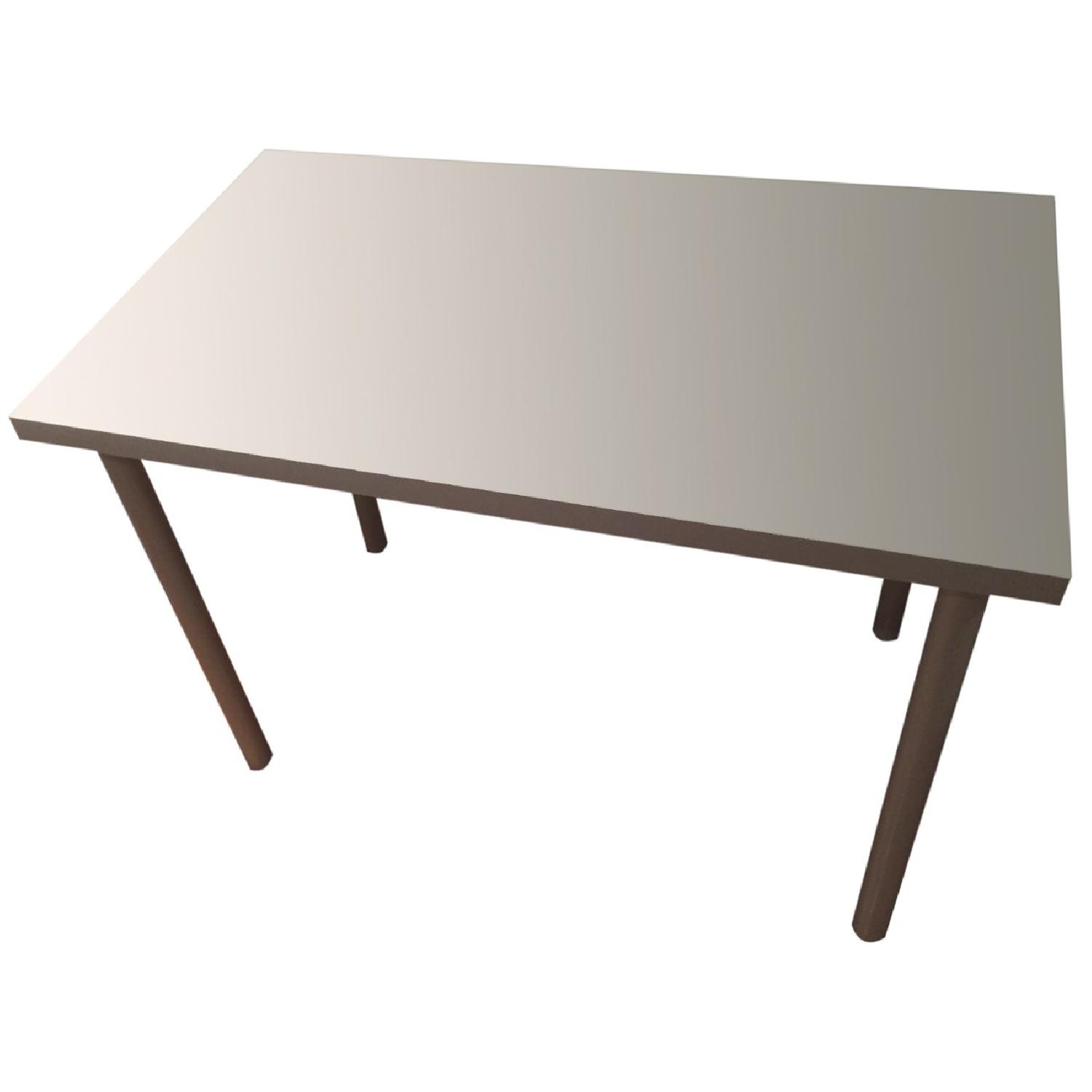 Seller's Notes:White desk Multi-use Product Materials: Table top: Particleboard, Fiberboard, Paper, ABS plastic, Acrylic paint Leg: Steel, Pigmented epoxy/polyester powder coating