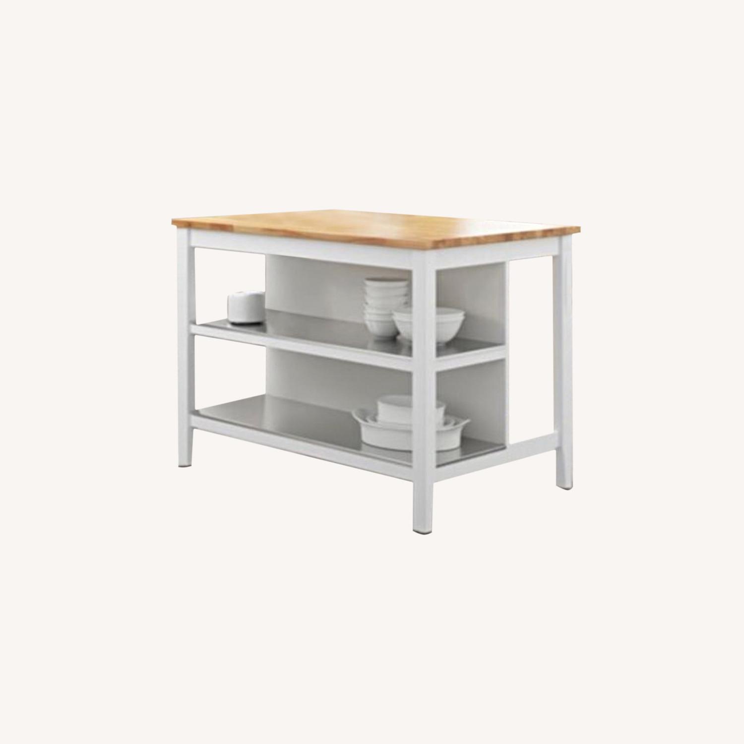 Seller's Notes:Moving out of the Country at the end of the month. This is a mint condition, freestanding kitchen island that has brought lots of good use and happiness to my apartment! Very minor scratches on the butcher block from use. Pair this with counter height stools for another option for seating. This is pretty heavy so I highly suggest you pick up with a friend.