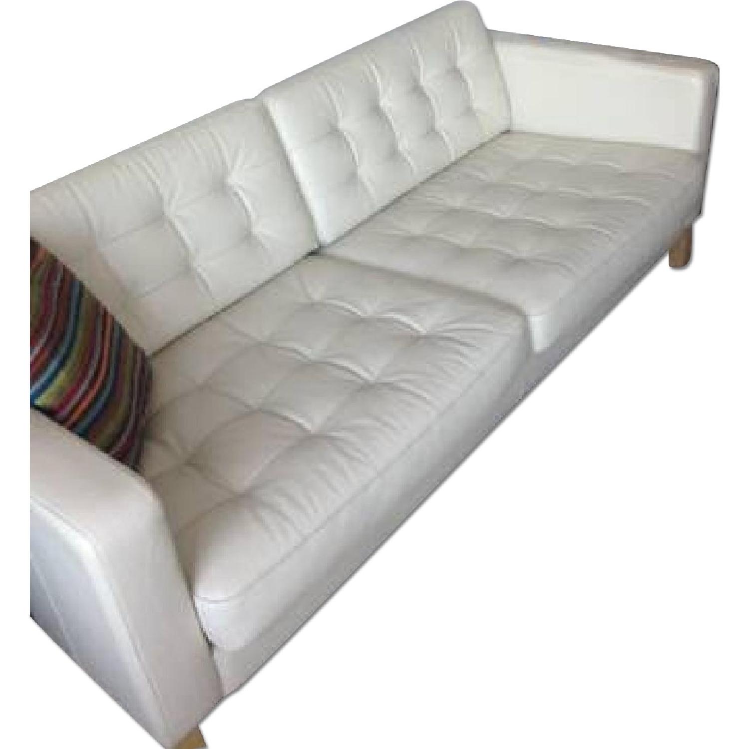 Seller's Notes:Gently used IKEA white leather sofa. Perfect size for NYC apartment and versatile style - goes with most anything. Accent pillow (shown in photos) included. Set of sofa, chair and ottoman