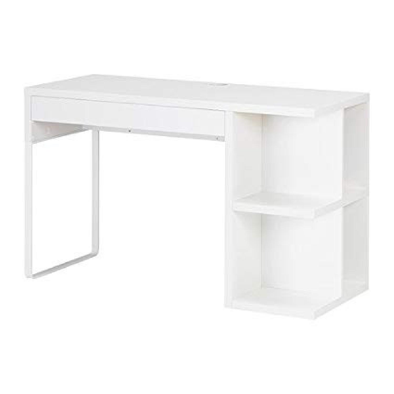 Seller's Notes:This desk was barely used, only to store things. Has some chipped paint that you can paint over. There's shelves as well as a drawer, and hole for monitor cable.
