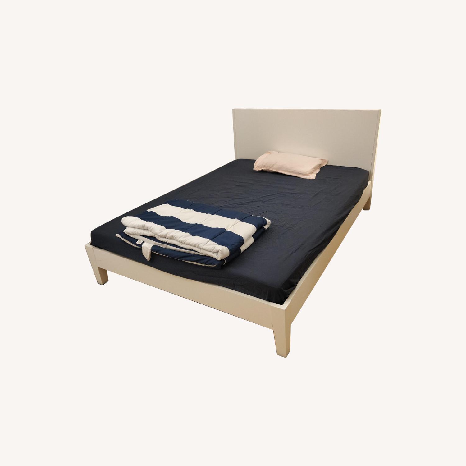 IKEA White Queen Bed with Headboard and Risers
