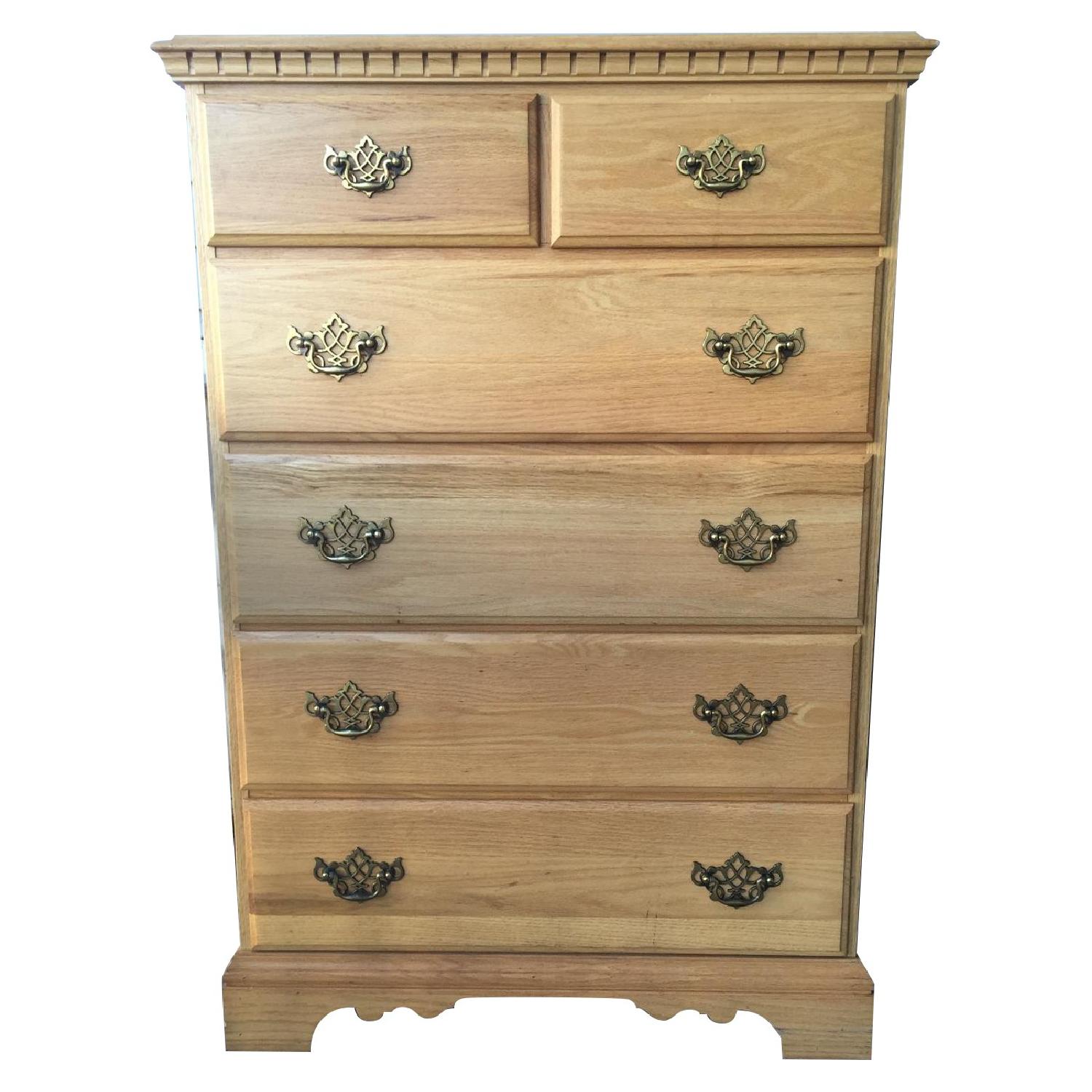 Seller's Notes:Very sturdy, real wood chest of drawers. There are some minor stains as seen in the pictures but not really effecting the beauty of the piece. It is made in Indonesia. From a smokefree petfree house. (Please check my other listings for matching items.)