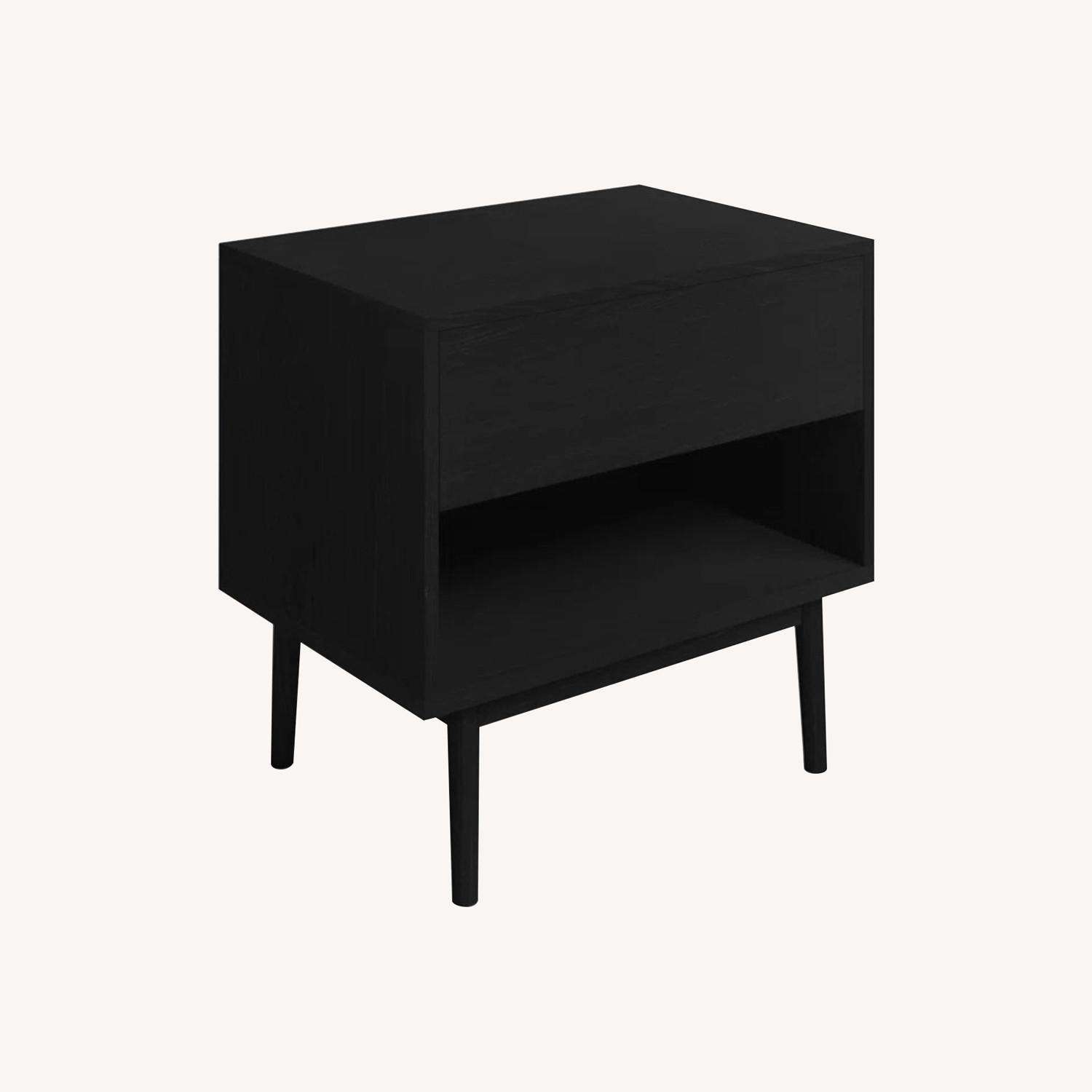 Seller's Notes:Simple and streamlined in design, this nightstand features a minimalist silhouette and a warm wood grain for just the right amount of mid-century style. It shows off a U-shaped cutout instead of a handle on the upper drawer for easy access to bedtime essentials. There's also a lower shelf for other items. Crafted from solid and engineered wood, it comes in a distinctive finish that works with your bedroom's overall aesthetic. And it rests on four tapered dowel legs to round out the look.