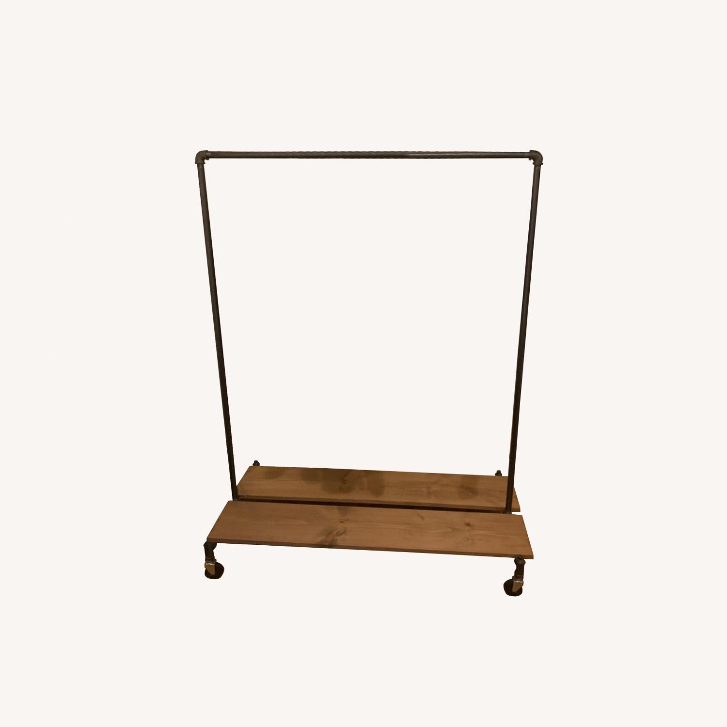 Seller's Notes:Like new industrial clothing rack with wooden platforms for extra storage. Would prefer pick up if possible, and am able to help with transport.