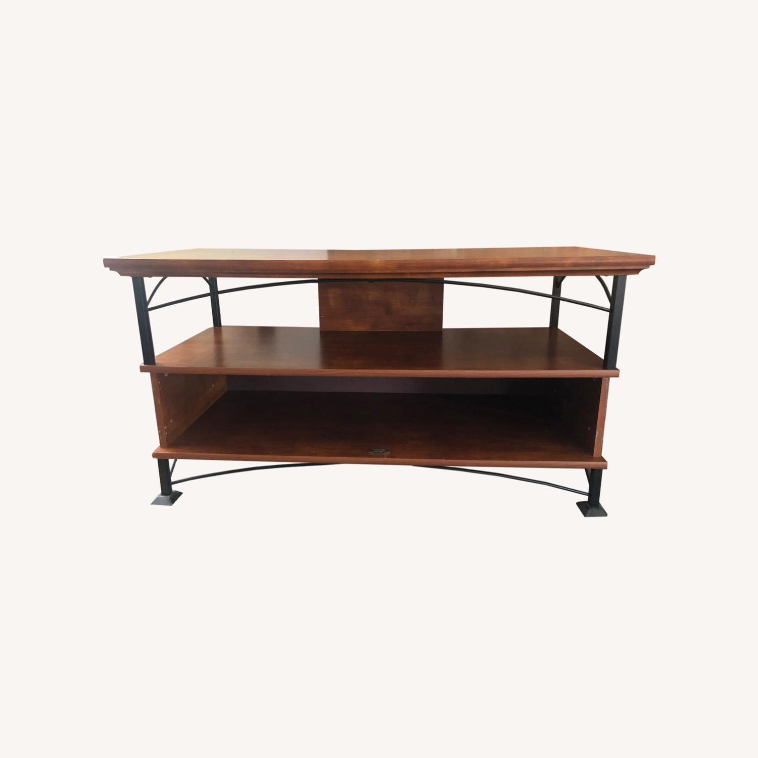 Seller's Notes:Media console, drawers removed from bottom shelf so used as cubby for items.