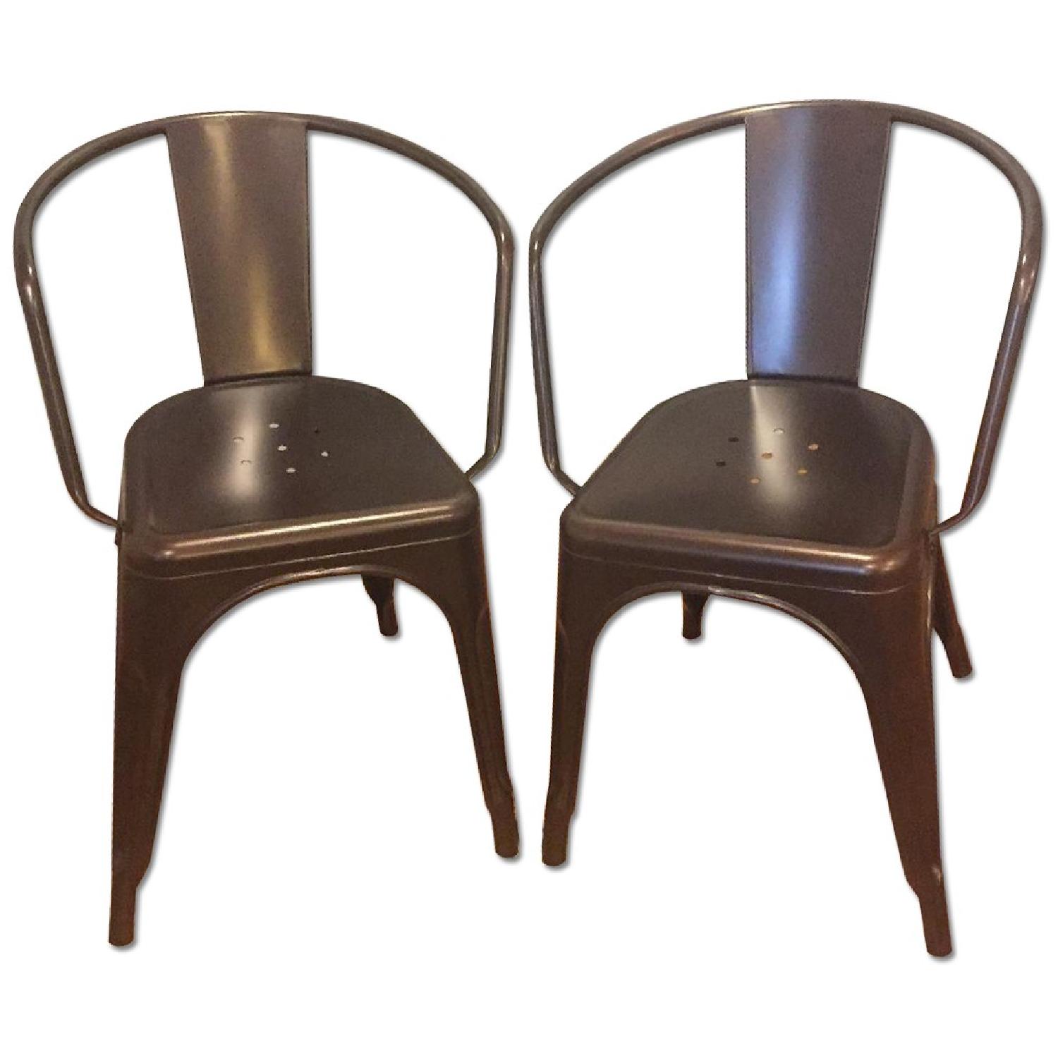 Seller's Notes:Sleek, modern industrial design with durable, metal construction. Wide seat with curved arms, great as accent or dining chairs. Set of 2 matching chairs, lightweight and stack-able.