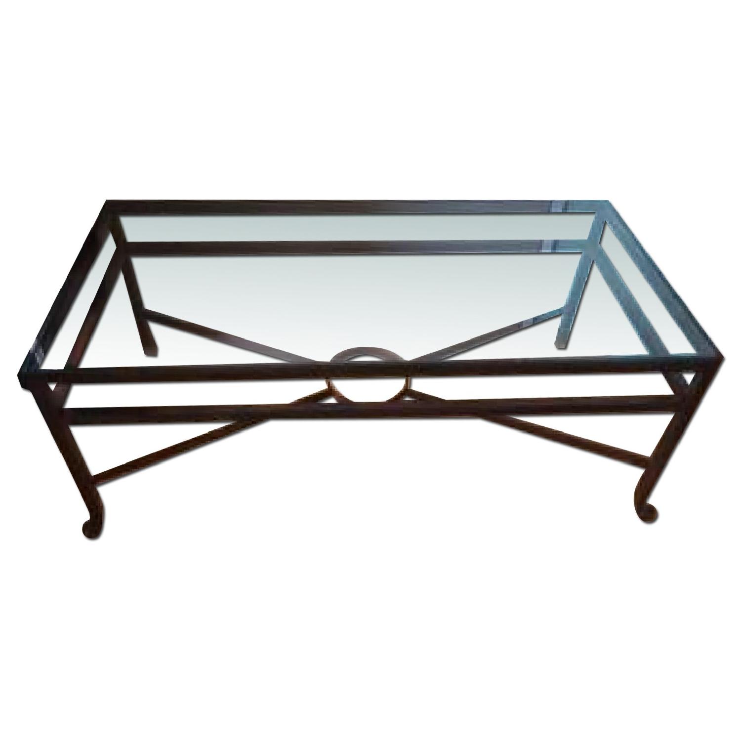 Industrial Metal Coffee Table w/ Glass Top
