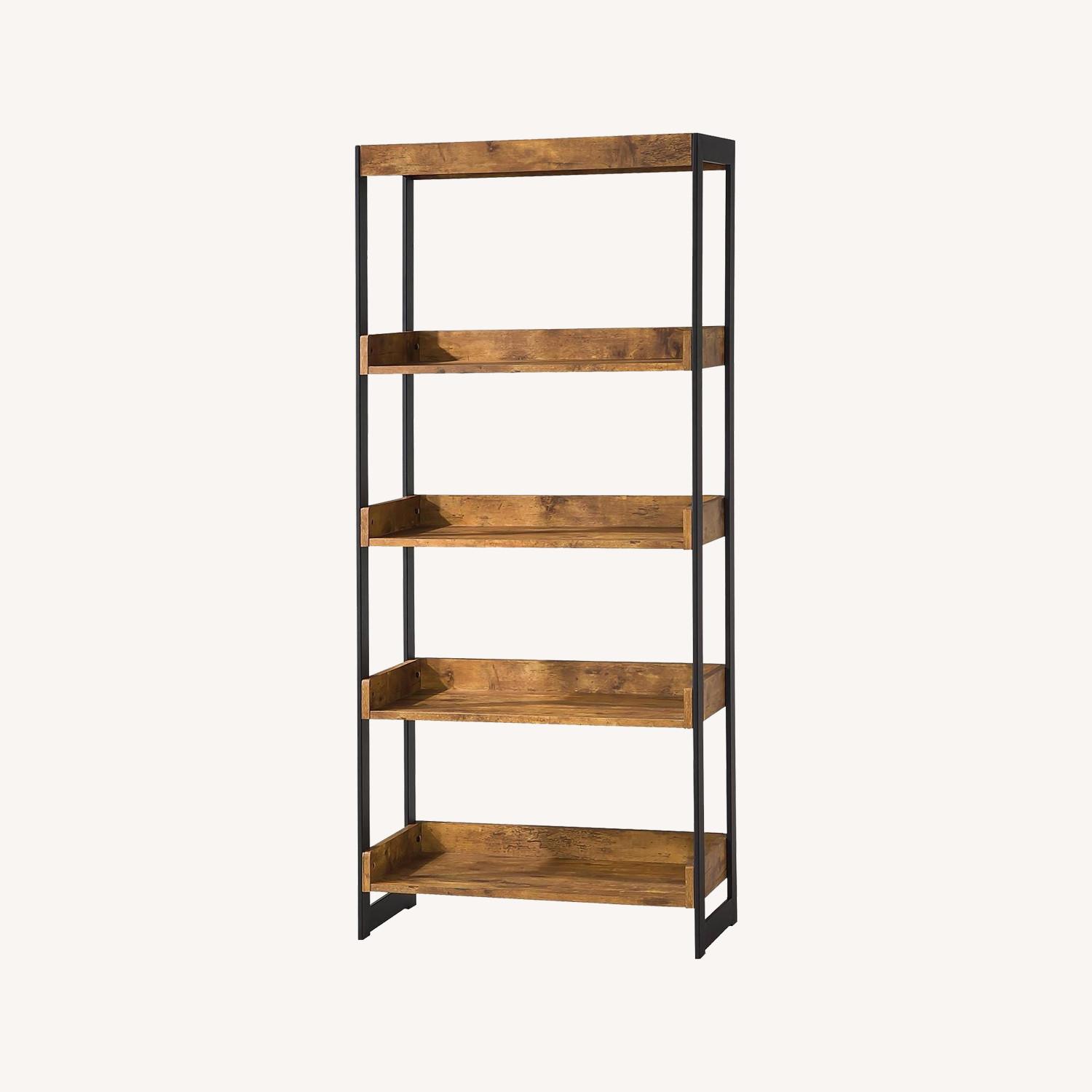 Seller's Notes:We bought this 3 years ago and it's an excellent condition still. Further info below including link to where it was bought originally. Pick-up in Dumbo and obviously no assembly required. https://www.aptdeco.com/product/industrial-style-bookcase-w-4-open-shelves-in-antique-nutmeg-gunmetal-finished-metal-frame • Mix media industrial style bookcase incorporating wood and metal finished in antique nutmeg and gunmetal • WOOD FINISH: ANTIQUE NUTMEG • METAL FINISH: GUNMETAL 26x13.25x60.25"H