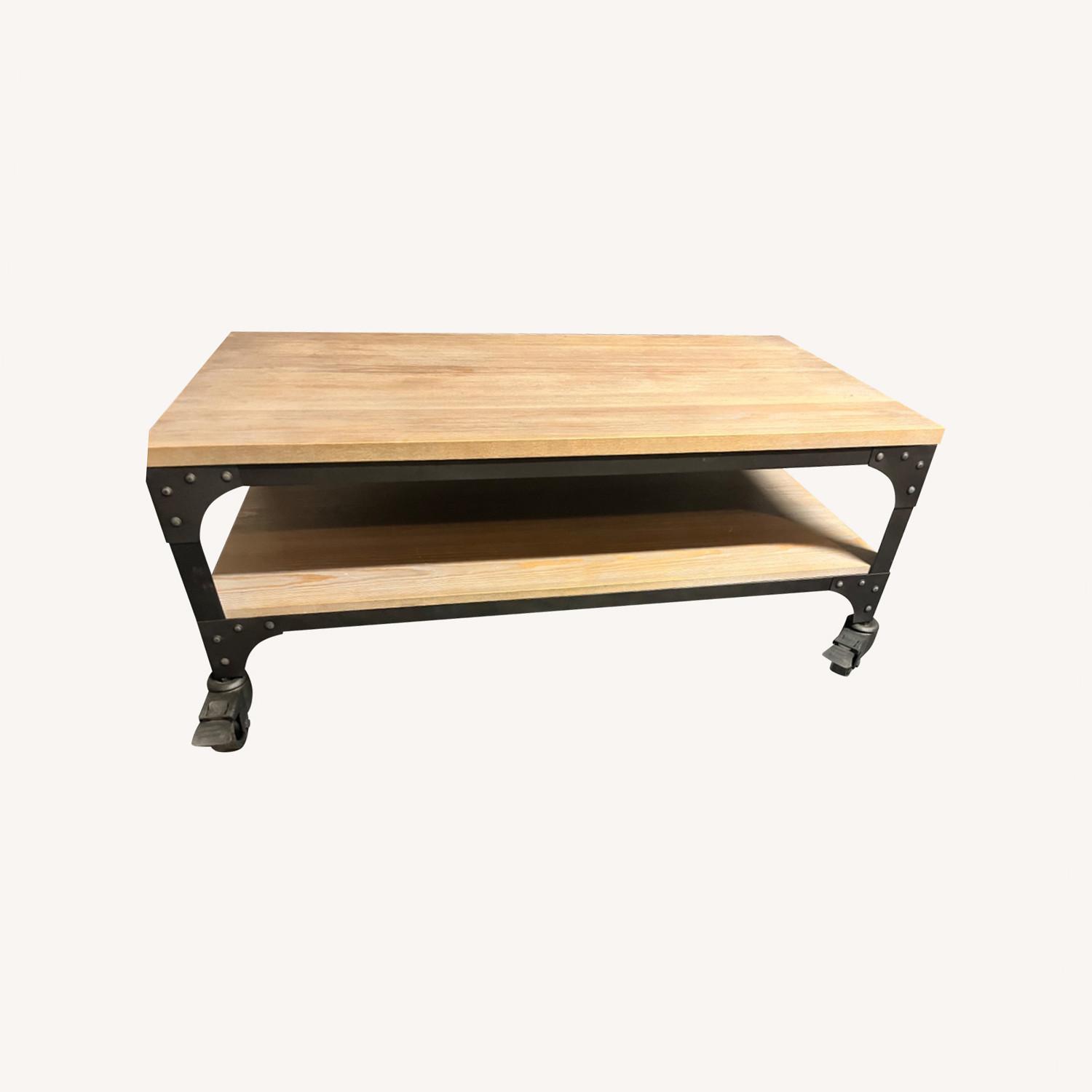 Industrial Wood Cast Iron-Look Coffee Table Wheels