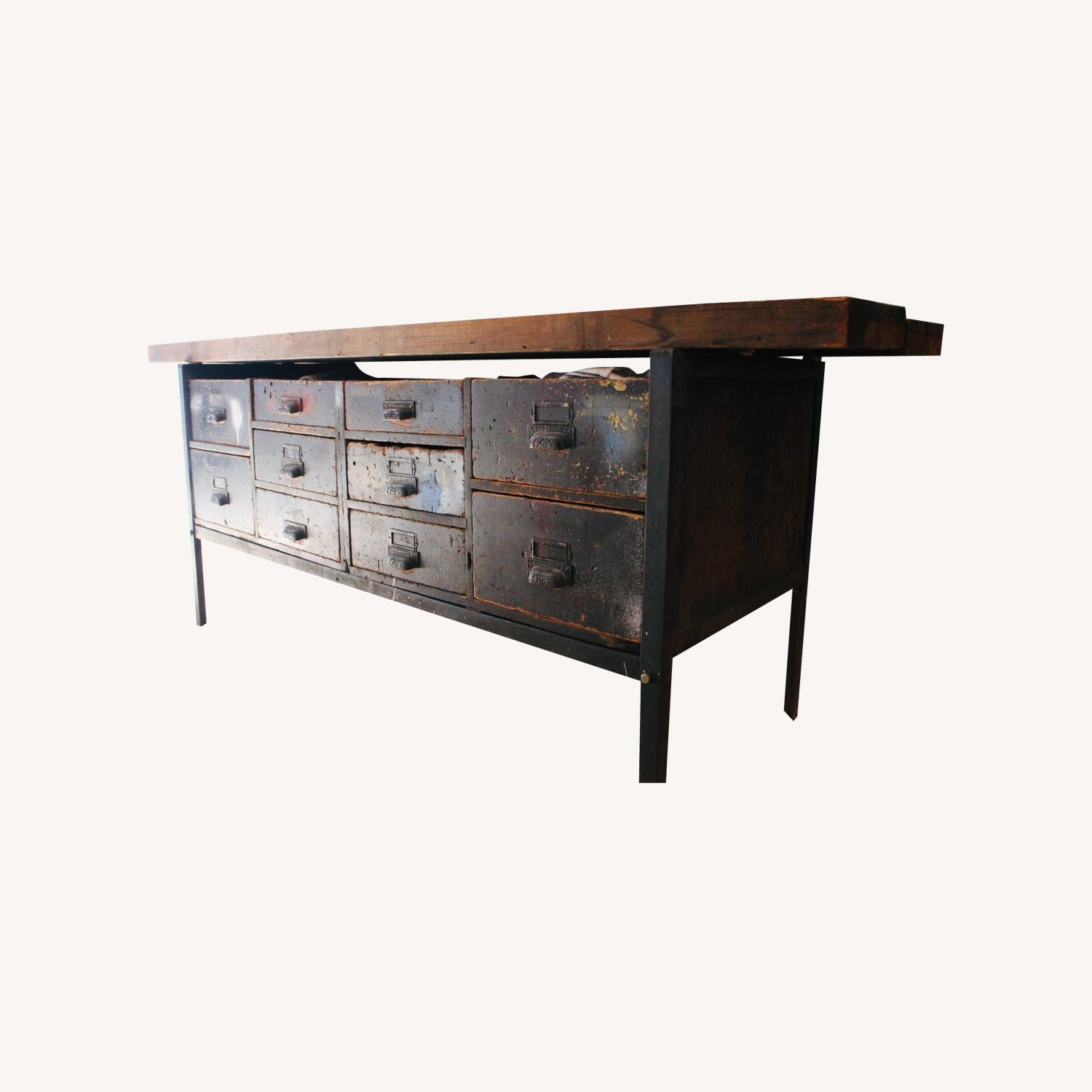 Seller's Notes:Eclectic industrial workbench made by a local Brooklyn artist. We've been using this as an incredible kitchen island to expand our countertop and storage space, but this piece is very versatile and could easily be used as a sideboard or console. The top wooden panels come off for easy transporting.