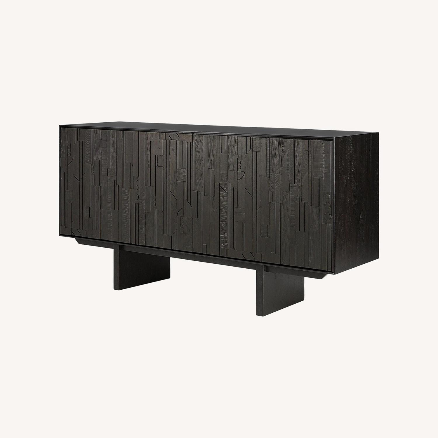 Seller's Notes:Industry West: “It all started with a happy incident. Inspired by the remaining offcuts from factory designs, the layered wood pieces of the Mosaic sideboard form a rhythm, reminiscent of the partition of a pipe organ. Deeply influenced by music within his creative process, Alain van Havre offers a renewed translation of his obsession for movement. This Mosaic sideboard features 3 doors. Mahogany doors with a varnish finish, teak body and legs with a varnish finish. Due to the hand-created nature of our products, each item will vary slightly. We consider this as a sign of uniqueness. This item does not qualify for sales events and is unavailable for additional discounting or promotions.” This item is for sale unused and brand new, but out of the box. Unfortunately, this item is too large for the niche it was intended to be placed :)