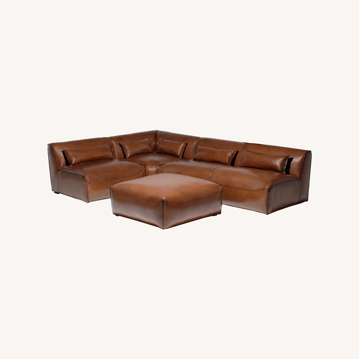 Seller's Notes:Acquired directly from the Industry West Showroom in SoHo when they closed earlier this year. Set includes all 4 pieces shown and multiple matching leather throw pillows. This set is still sold by Industry West for around $7,000.