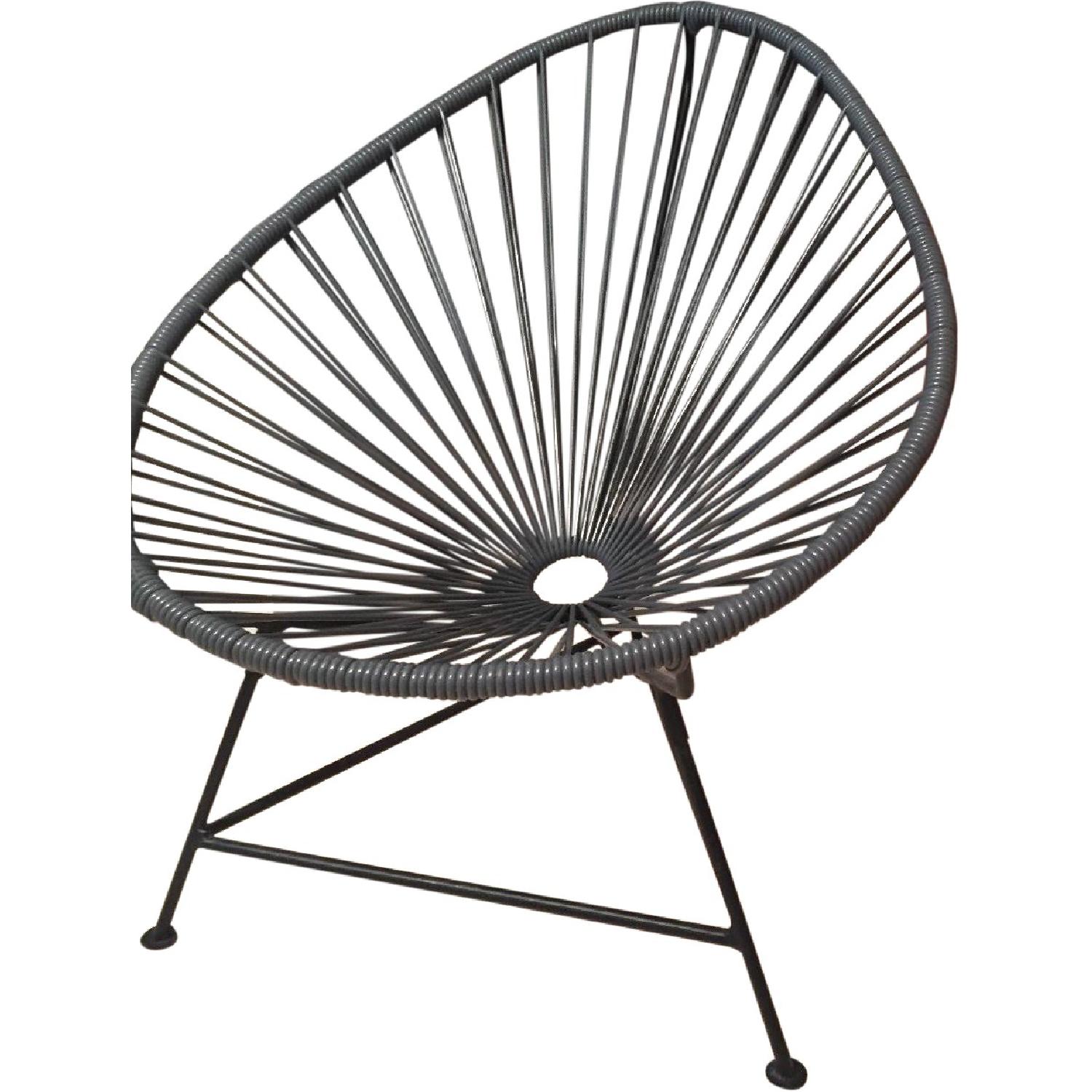 Seller's Notes:Innit Designs Baby Acapulco Chair, Grey Weave on Black Frame The Baby Acapulco Chair-Suitable for indoors and out. Composed of a metal base and seat woven with vinyl cord. The Baby is surprisingly comfortable without a cushion for adults and children. This miniature version of our famous Acapulco Chair is great for the backyard, for trips to the park or to stylishly outfit smaller rooms. The galvanized steel resists rust and the very durable yet flexible, UV protected vinyl will stay colorfast for years. It's weatherproof, breathable, easy to clean, and available in everybody's favorite color. A great, modern design for commercial and residential applications. Mini version of the popular Acapulco lounge chair (kid- and adult-friendly) Recycled galvanized-steel frame; semi-textured polyester powder coat; UV-resistant vinyl cord Pear-shaped frame and tripod base; for indoor/outdoor and residential/commercial use Weatherproof, stackable, and easy to clean; available in a variety of colors Sitting Height is 10 inches.