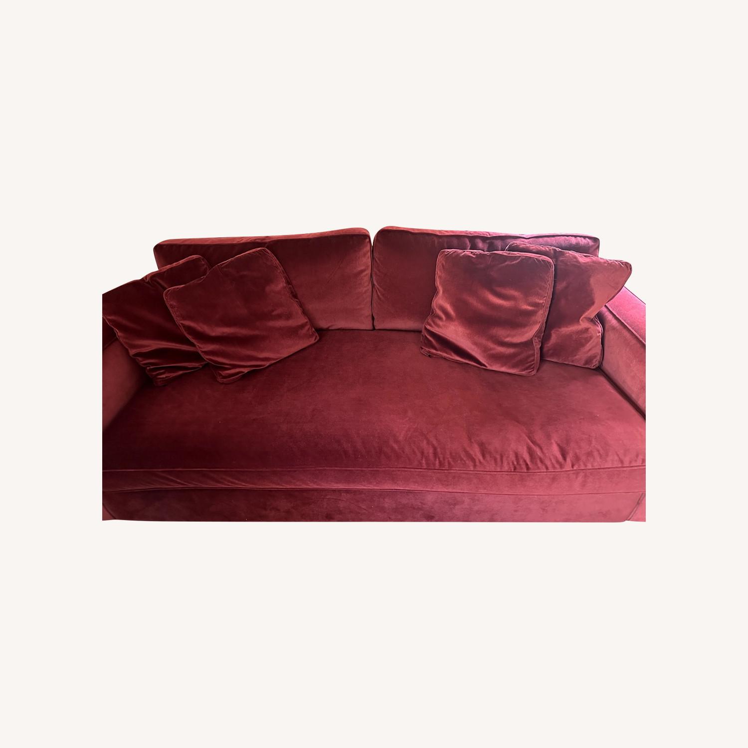 Seller's Notes:I custom ordered Interior Define James Sofa, about 88 -90" long, can easily sleep/nap for a person up to 6' if wanted to. Very comfortable, in excellent condition. The bench cushion has a foam core and is wrapped in down, so cushion can be reversed. Does NOT need frequent reversing at all! I love this sofa but I am moving and cannot take it with me, that's why I am selling, otherwise I would keep it! I love the deep seating as well. The performance velvet is easy to vacuum and keep clean, I've only had it for a year.