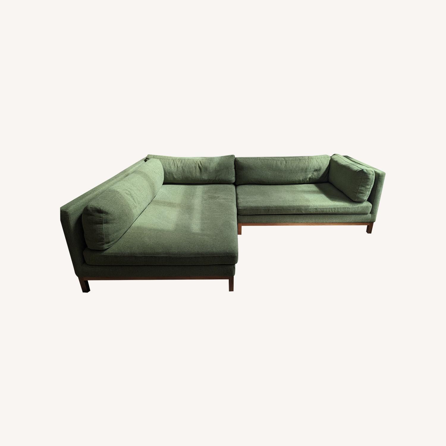 Seller's Notes:A custom Jasper Chaise that has held up wonderfully over the last 4 years, still looks remarkably new other than a few scratches. We have a dog that was only allowed on blankets on the couch – there are no blemishes on the fabric, only some residual dog hair. This fabric was created to be pet friendly, it cleans easily and is hard to scratch. The chaise-side has a deep 48" depth, it almost acts as a full-sized bed when removing the pillows (48x72). The sofa-side has a 36" depth with an additional single arm.