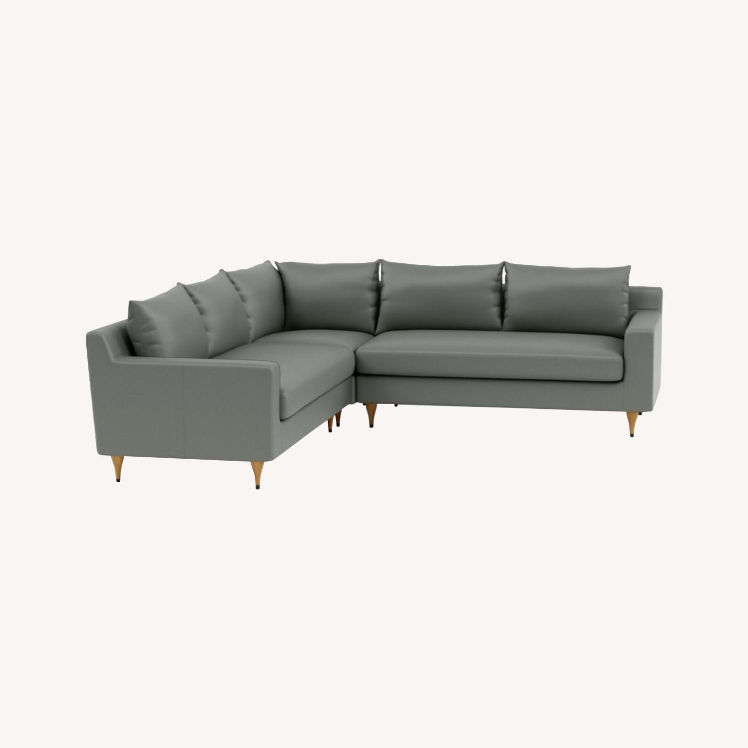 Seller's Notes:Purchased 10 months ago. Does not fit well in new living room. Sloan strikes an ideal balance between sleek and soft. Take, for instance, the crisp lines of its track arm, which are offset by a subtle taper near the back. The Sloan leather corner sectional sofa reflects a modern influence, yet is approachable and livable. It's no wonder it feels right in a variety of decors, whether modern or more traditional. Sloan's sit profile only adds to the universal appeal. With a medium height and depth, it's a sectional sofa that suits a range of body types. The layered cushion is soft, yet supportive, and can be upgraded for an extra-soft sit.