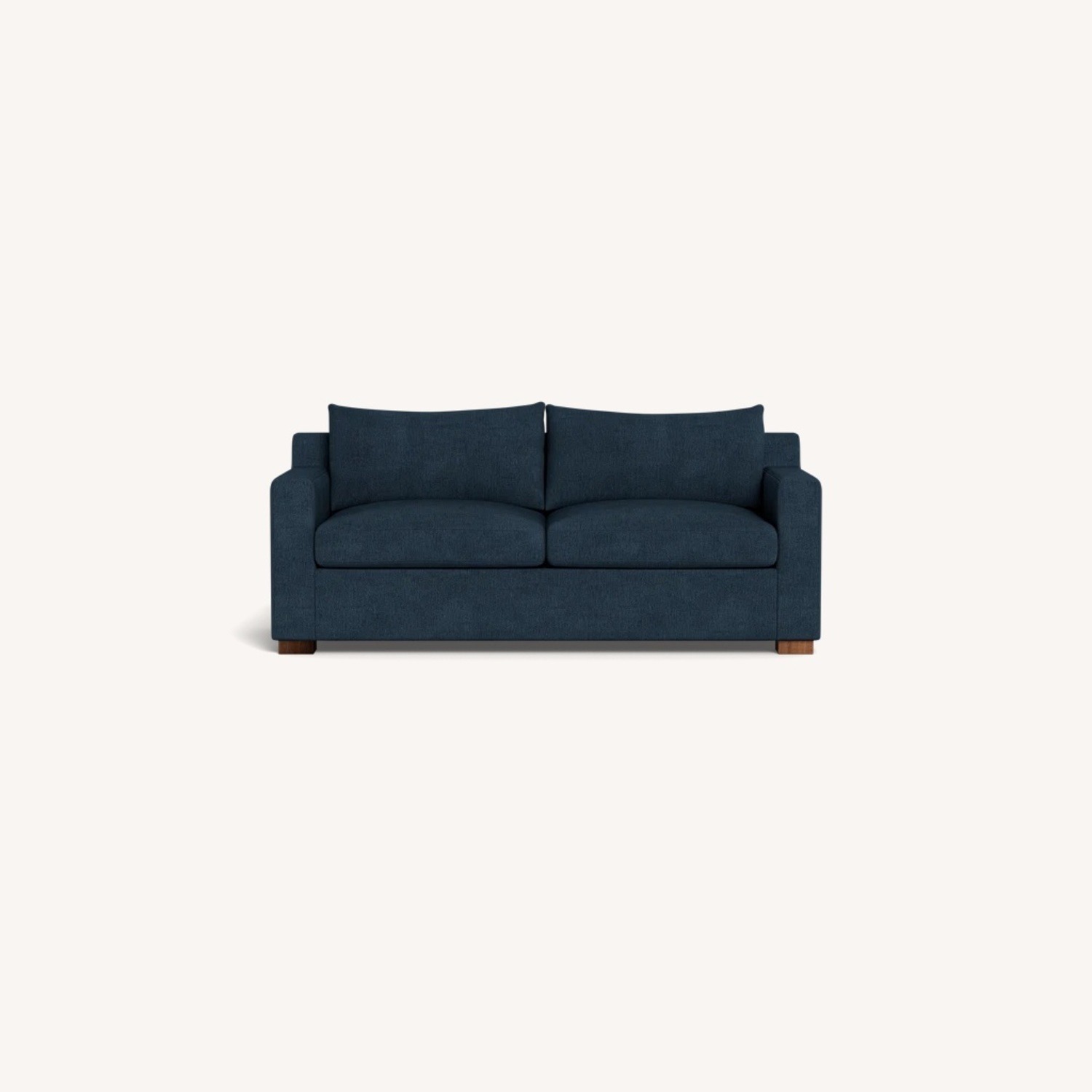 Seller's Notes:According to the original owner this a navy blue velvet sleeper sofa with memory foam mattress from Interior Define that was purchased originally at $2,500 and they had it for 1 year. It was barely used. Sloan strikes an ideal balance between sleek and soft. Take, for instance, the crisp lines of its track arm, which are offset by a subtle taper near the back. The Sloan custom sleeper sofa's design reflects a modern influence, yet is approachable and livable. It's no wonder it feels right in a variety of decors, whether modern or more traditional. Sloan's sit profile only adds to the universal appeal. With a medium height and depth, this sleeper sofa suits a range of body types. The layered cushion is soft, yet supportive, and can be upgraded for an extra-soft sit. The 5.5-inch thick mattress is topped with memory foam -- don't be surprised if your guests (or you) sleep a little late. Sleeper queen mattress dimensions: 60"W x 72"L x 5.5"H