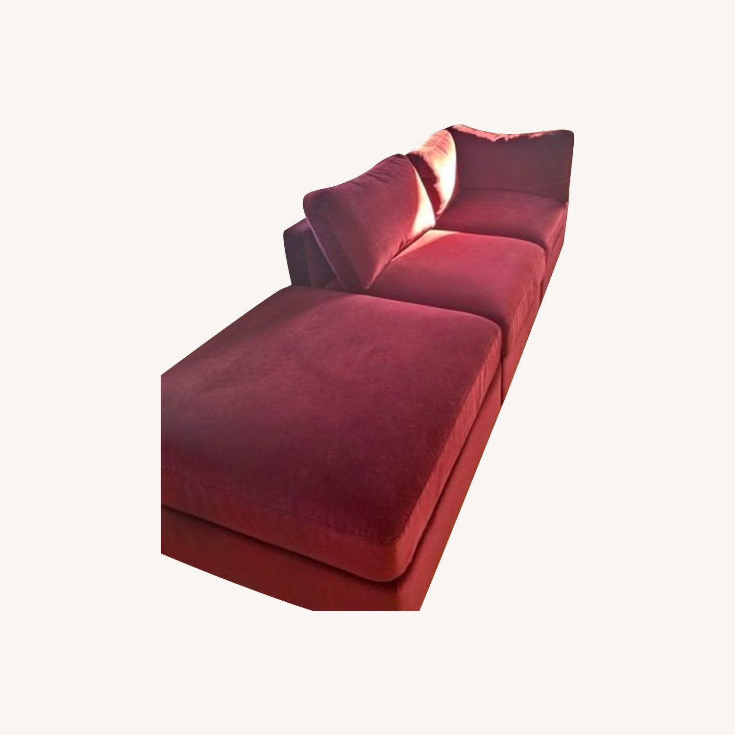 Seller's Notes:In like new condition, the Tatum Modular Sofa with open ottoman in wine color is a fantastic and flexible sofa for any space. Incredibly comfortable and a great place to nap or watch a movie. We love this sofa, but it doesn’t work in our space! Take her from us and give her a new and beautiful life!