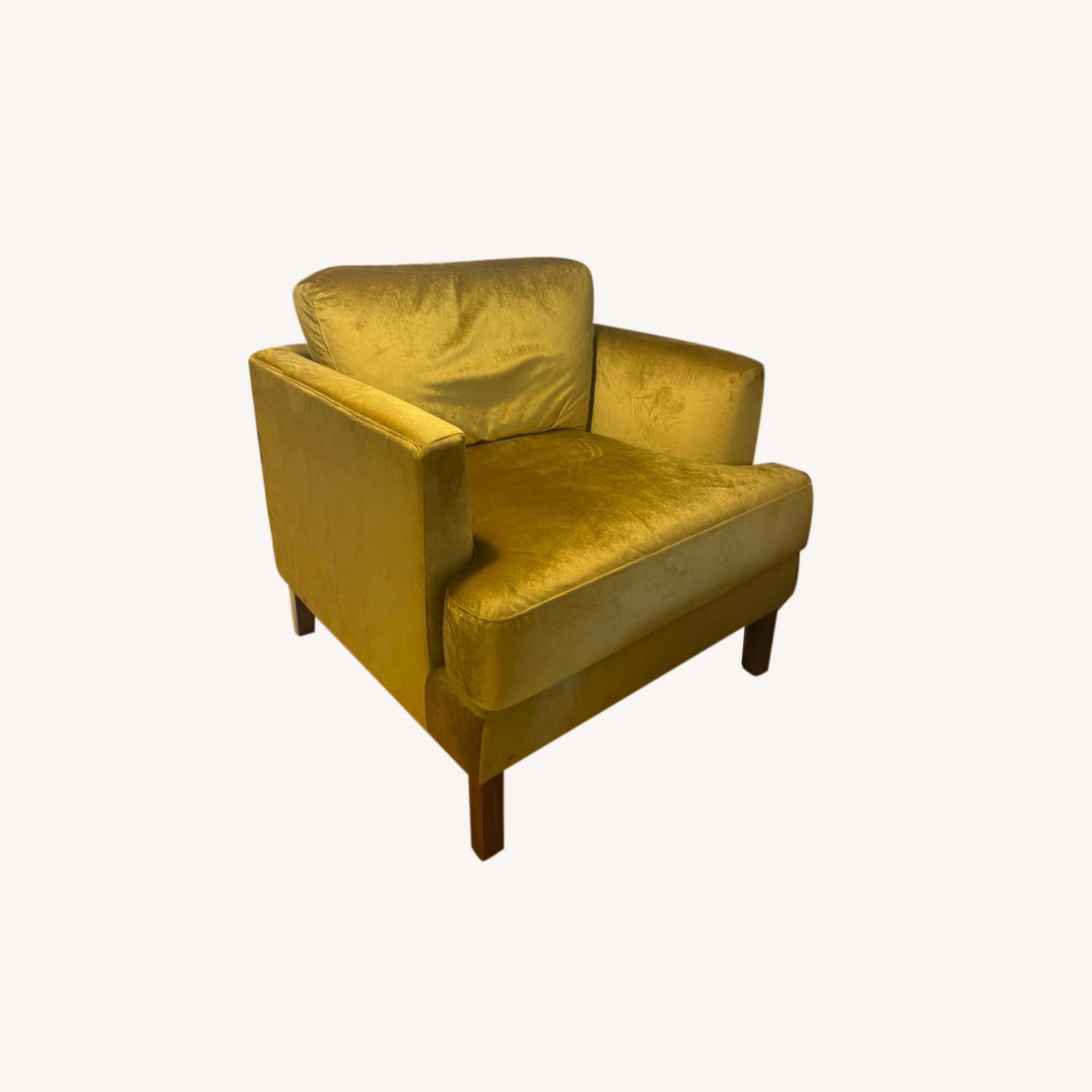 Seller's Notes:no stains or scratches, just some creasing - less than 2 years old. legs are removable. the color leans green and the color in the photos is pretty dead on, in natural light it's more gold. Winslow's elegant design doesn't just fade into the background—it complements everything in the room. With subtle curves and soft corners, it's an effortlessly cool silhouette that's all about the details: back cushions that taper in to meet slightly curved, slimmed-down arms. A heightened leg design that makes a statement all its own. A beautiful bench cushion that's undeniably stylish but still cozy enough for naps. If there ever were a sofa that so easily balanced clean design and roomy comfort, Winslow is it.