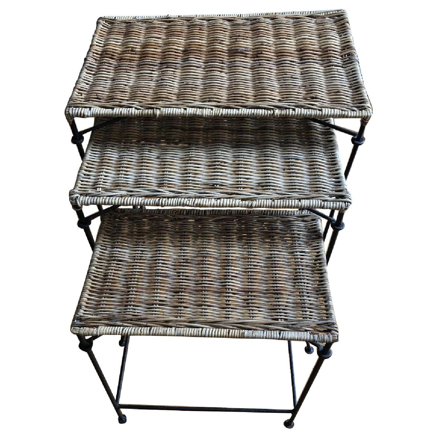 Iron & Wicker Mid-Century Nesting Tables