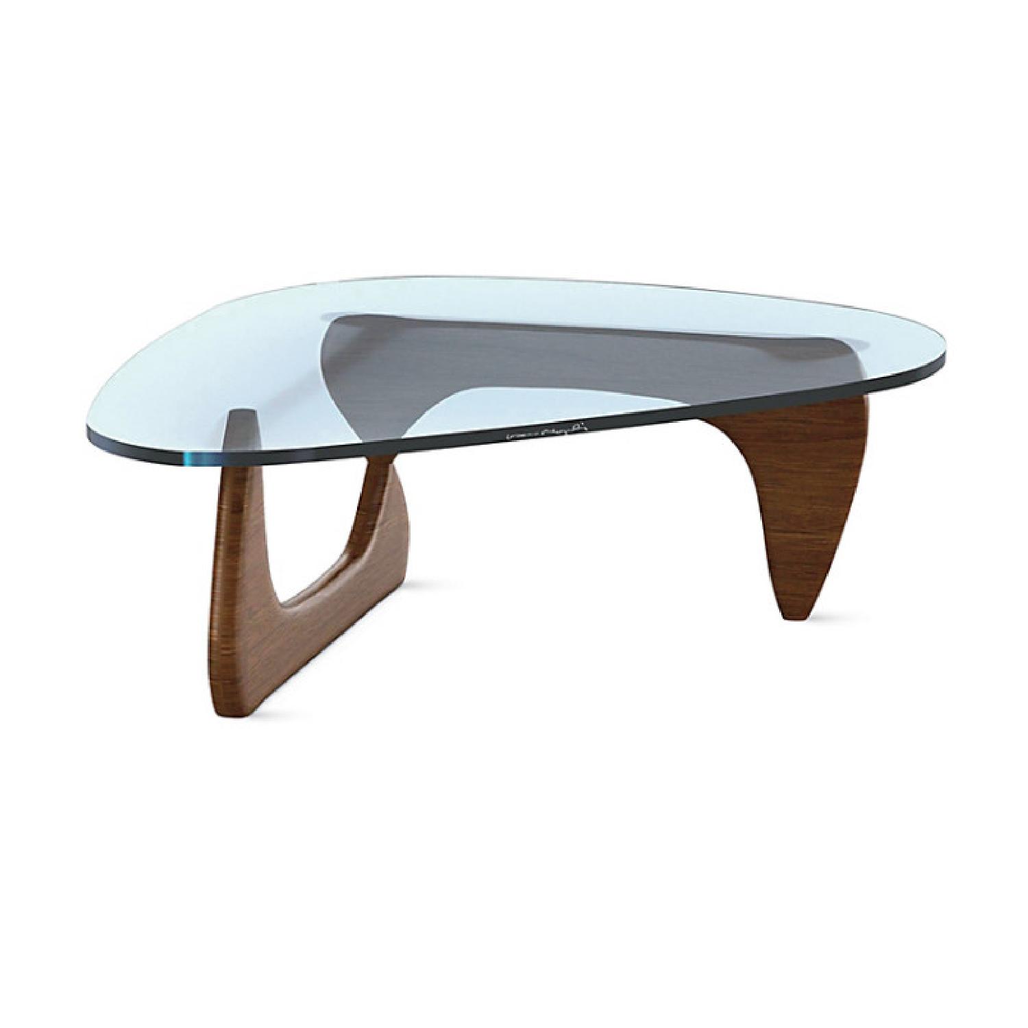Seller's Notes:Description Following his apprenticeship with the legendary Constantin Brancusi, sculptor Isamu Noguchi began to experiment in environmental design, theatrical sets – he was the only designer that choreographer Martha Graham would work with – and, eventually, product design. He created his first furniture prototypes for Herman Miller in 1942 and went on to work with companies such as Steuben and Zenith. The Noguchi Table (1948) conceals nothing, revealing everything about the nature of simplicity. Two smoothly shaped pieces of solid wood interlock to form a tripod that supports a thick glass tabletop. The base is available in black, walnut, natural cherry and white ash, the latter of which is finished with a process that arrests the wood in its freshly cut state, resulting in a creamy white color that will not turn yellow over time. This is the authentic Noguchi Table by Herman Miller. Made in U.S.A. The configuration of this table is a registered trademark. To signify its authenticity, this table is etched with Noguchi's signature in two places: on the longest edge of the glass tabletop and on a medallion on the underside of the base.